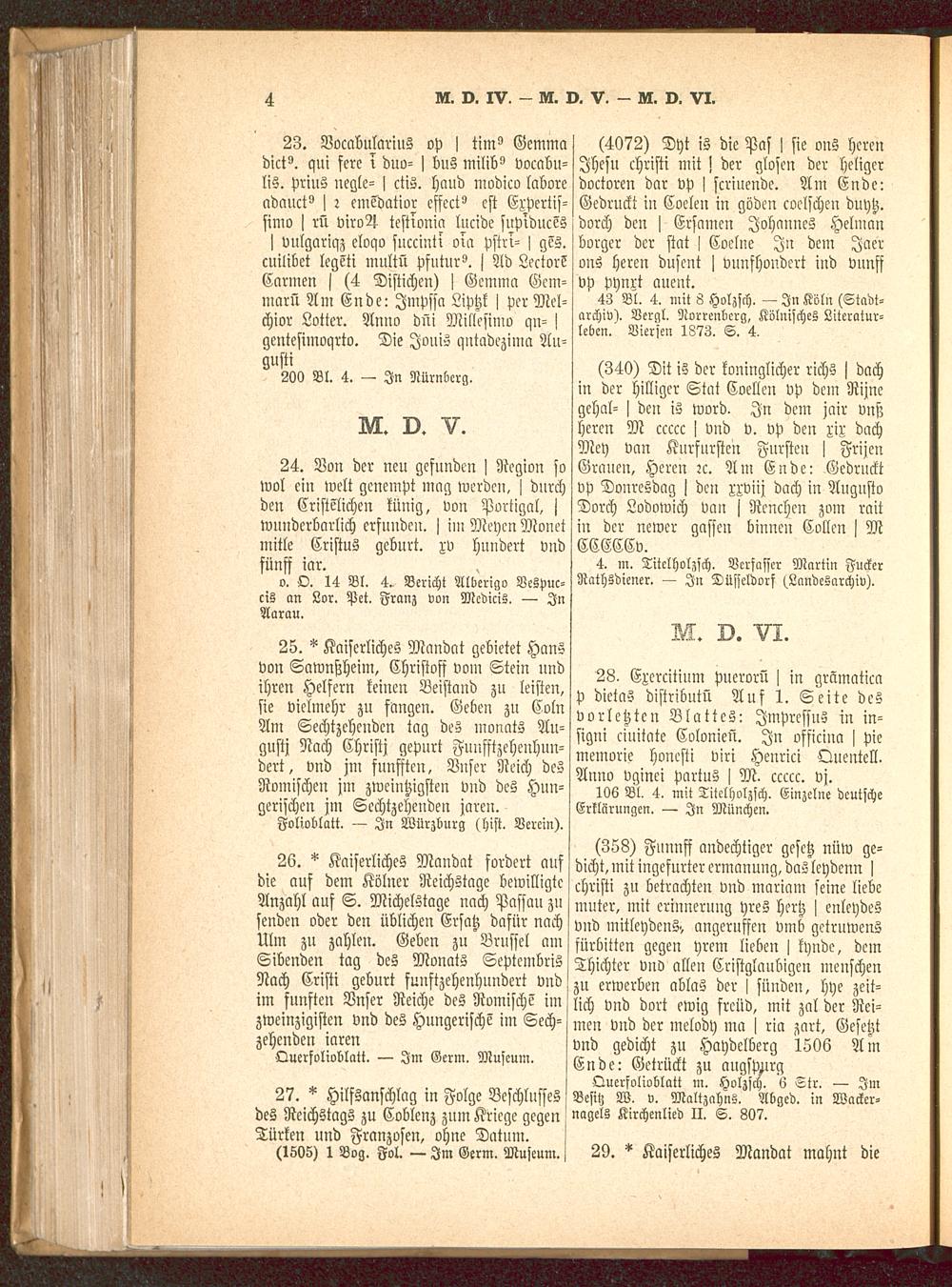 28. Exercitium puerorü > in grämaticap dictas distributü Auf 1. Seite desvorletzten Blattes: Jmpressus in in-signi ciuitate Colonien. In officina s piememorie honesti viri Henrici Qucntell.Auno vginei partus j M. ccccc. vj.