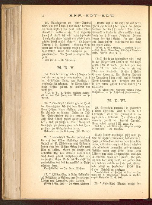 (358) Funnff cmdechtigcr gesctz nttw ge-dicht, mit ingefnrtcr crmanung, das leydcnn schristi zu betrachten vnd mariam seine liebemuter, mit crinneruug yres Hertz j enleydesvnd mitleydcns>, angeruffen vmb gctrnwcnssürbitten gegen yrem lieben s kynde, dcmThichter vnv allen Cristglanbigen menschenzu erwerben ablas der s fünden, hye zeit-lich vnd dort ewig frcüd, mit zal der Rei-men vnd dcr mclody ma ! ria zart, Gesetztvnd gedieht zn Haydclberg 1506 AmEnde: Gctrückt zu angsMrg