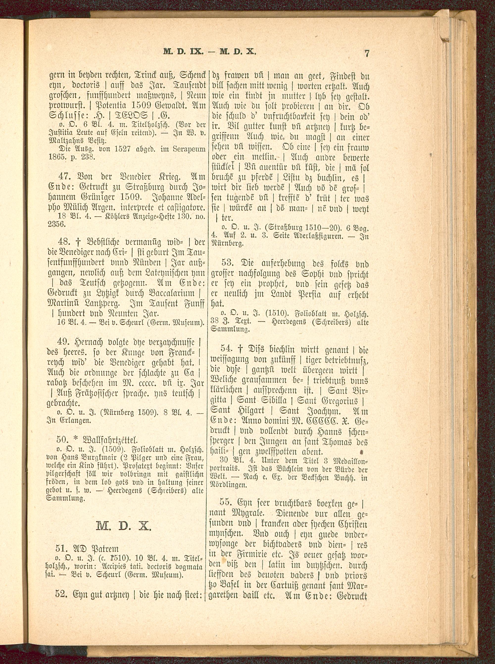 o. O. u. I. (Nürnberg 1509). 8 Bl. 4, -In Erlangen .