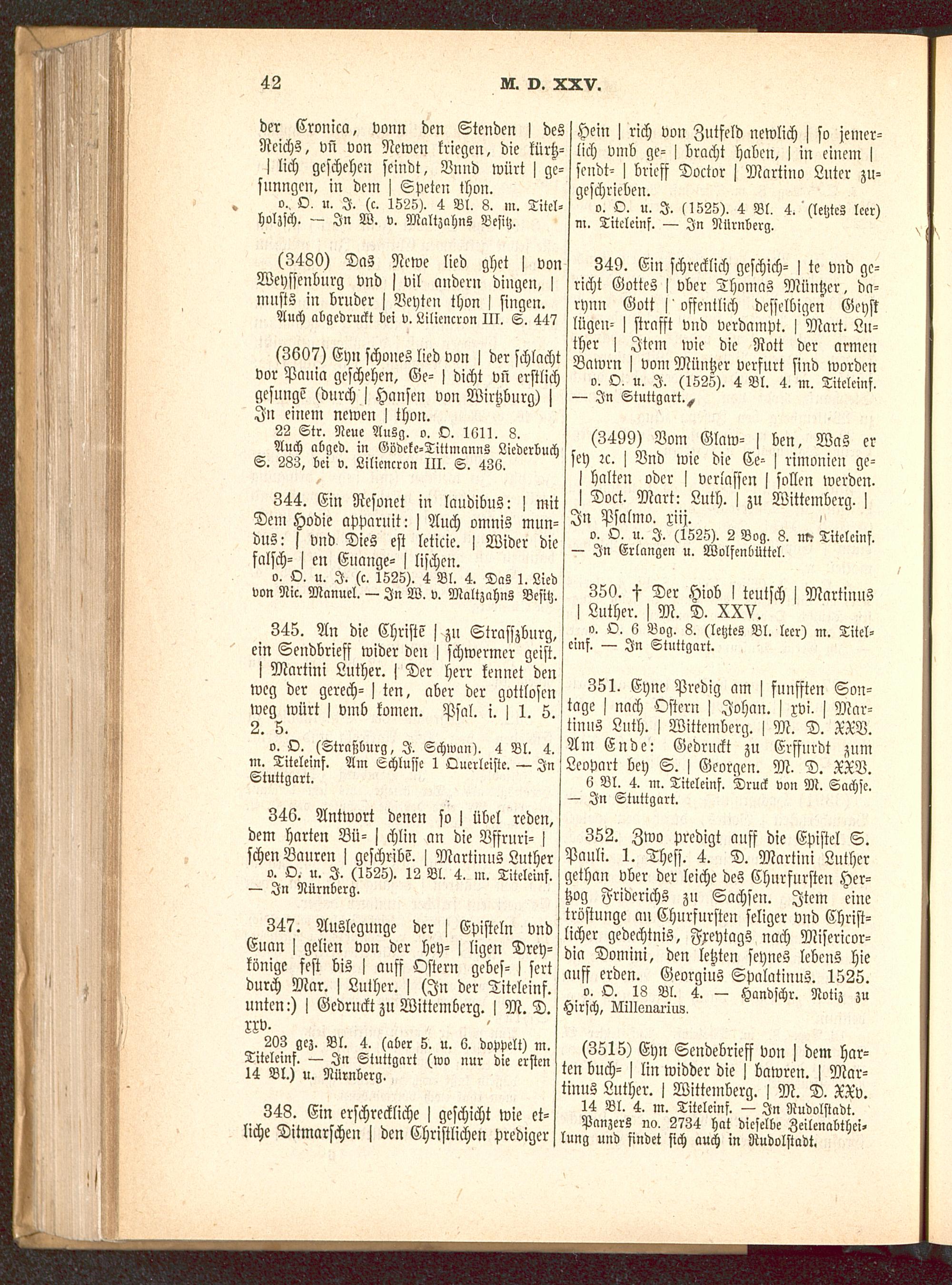 349. Ein schrecklich geschieh- I te vnd ge-richt Gottes > vbcr Thomas Müntzcr, da-rynn Gott I ^ öffentlich desselbigen Geysklügen- I strafft vnd verdamvt. > Mart. Lu-ther I Item wie die Rott der armenBawrn > vom Müntzer verfurt sind worden