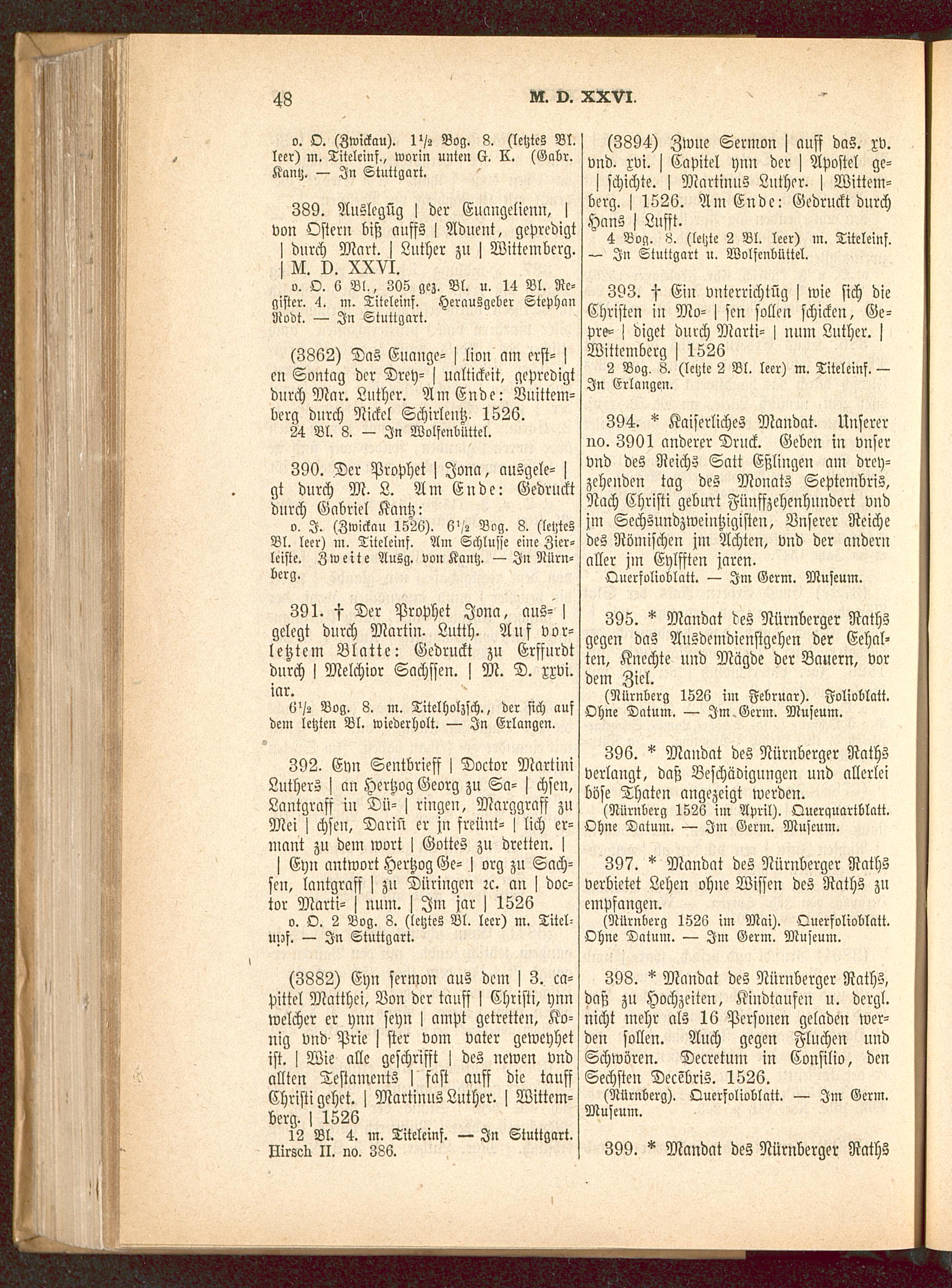 394. * Kaiserliches Mandat. Unsererno. 3901 anderer Druck. Geben in vnservnd des Reichs Satt Eßlingen am drey-zehenden tag des Monats Septembris,Nach Christi gebuvt Fünffzehenhundert vndjm Sechsundzweintzigisten, Vnserer Reichedes Römischen jm Achten, vnd der andernaller jm Eylfften jaren.