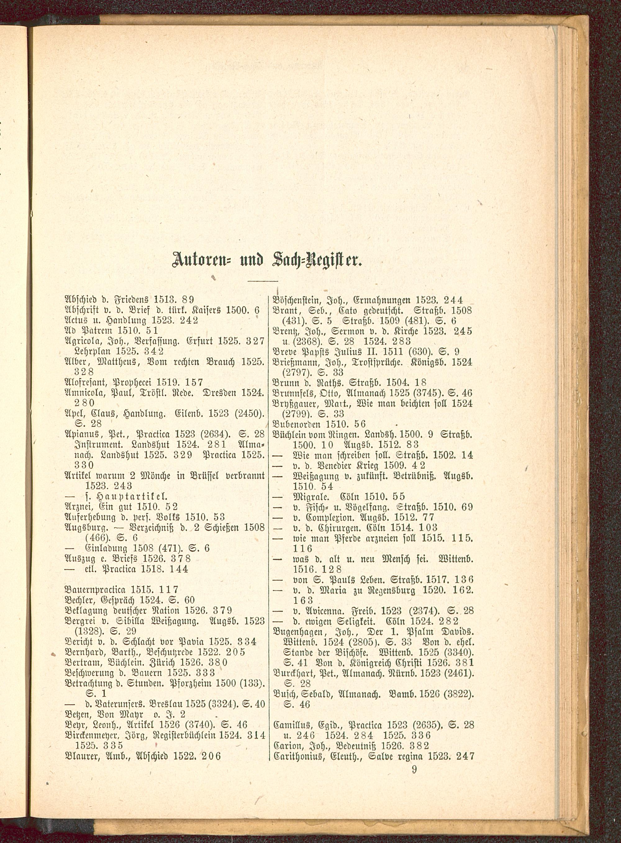 (1323). S. 29Bericht v. d. Schlacht vor Pavia 1525. 3 34Bernhard, Barth., Beschulzrede 1522, 20 5Bertram, Buchlein, Zürich 1526. 380Beschwerung d. Bauern 1525. 333Betrachtung d. Stunden. Pforzheim 1500 (133).S. 1