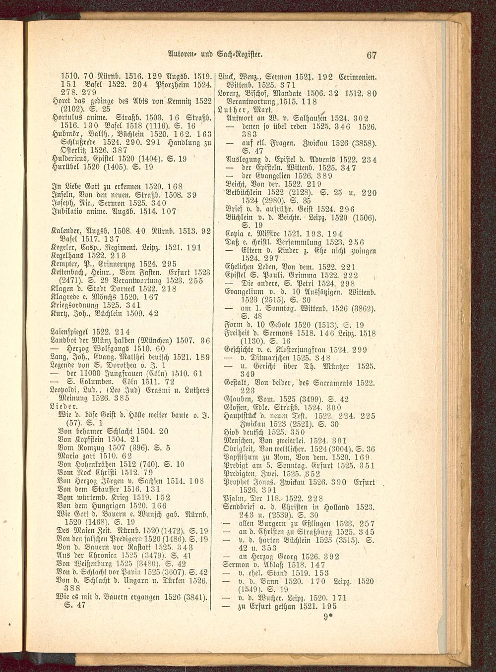 1520 l1468). S. 19Des Maien Zeit. Nürnb. 1520 (1472). S. 19Von den falschen Predigern 1520 (1486). S. 19Von d. Bauern vor Anstatt 1525. 3 43Aus der Cbronica 1525 (3479). S. 41Von Weißenburg 1525 (3480). S. 42Von d. Schlacht vor Pavia 1525 (3607). S. 42Von d. Schlacht d. Ungarn u. Türken 1526.