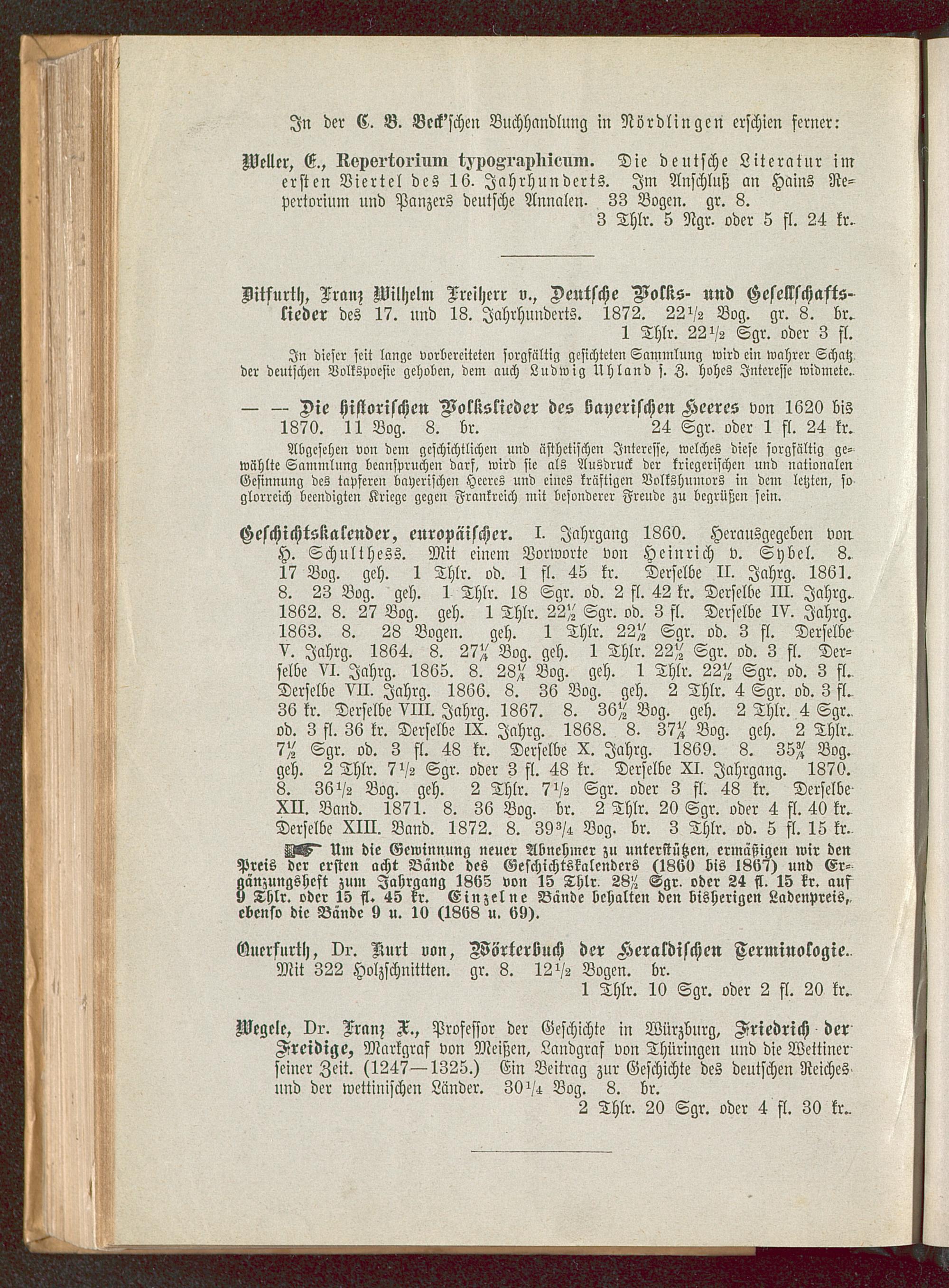 In der C. B. Beck'schen Buchhandlung in Nördlingen erschien ferner: