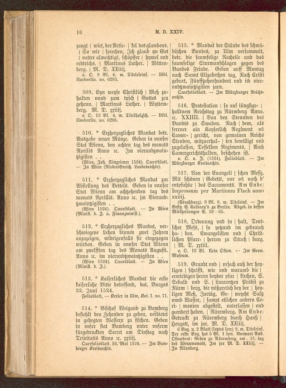 510. ^ Erzherzogliches Mandat betr.Ausgabe neuer Münze. Geben in vnnserEtat Wienn , den achten tag des monatsAprilis Anno zc. Im vierundzwain-tzigisten . .