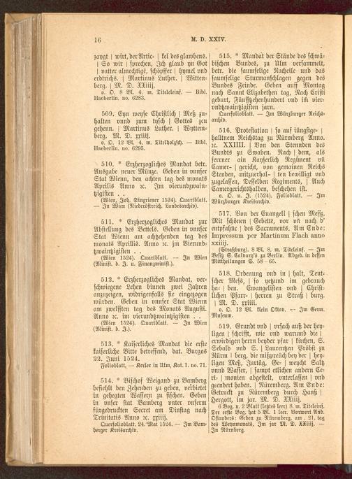 514. ^ Bischof Weigand zu Bamberg befiehlt den Zehenden zu geben, verbietetin gehegten Wassern zu fischen. Gebenin vnser stat Bamberg vnter vnsermfürgedruckten Secret am Dinstag nachTrinitatis Anno ?c. xxiiij.
