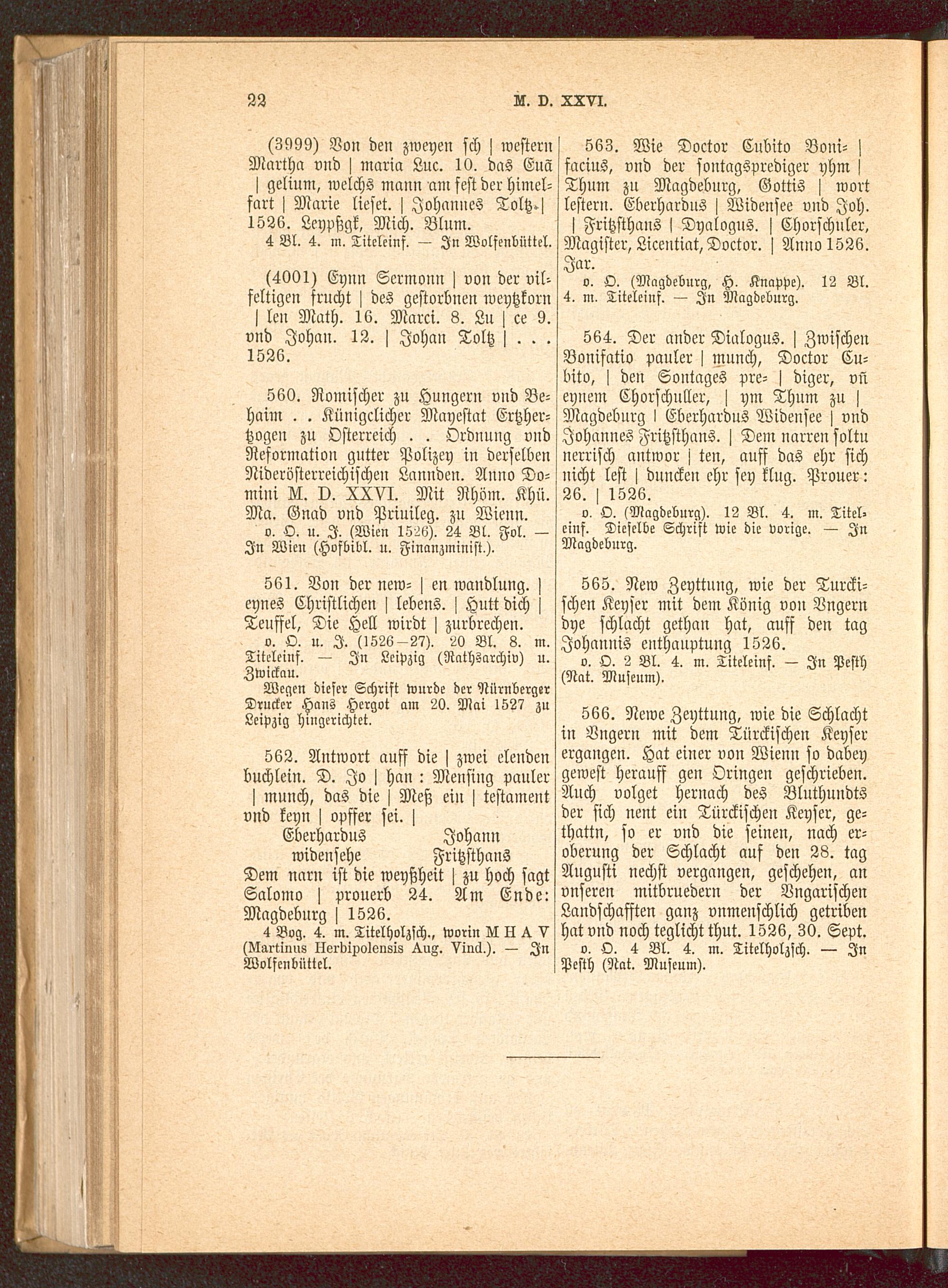 o. O. u. I. (1526-27). 20 Bl. 8. m.Titeleinf. — In Leipzig (Rathsarchiv) u.Zwickau .