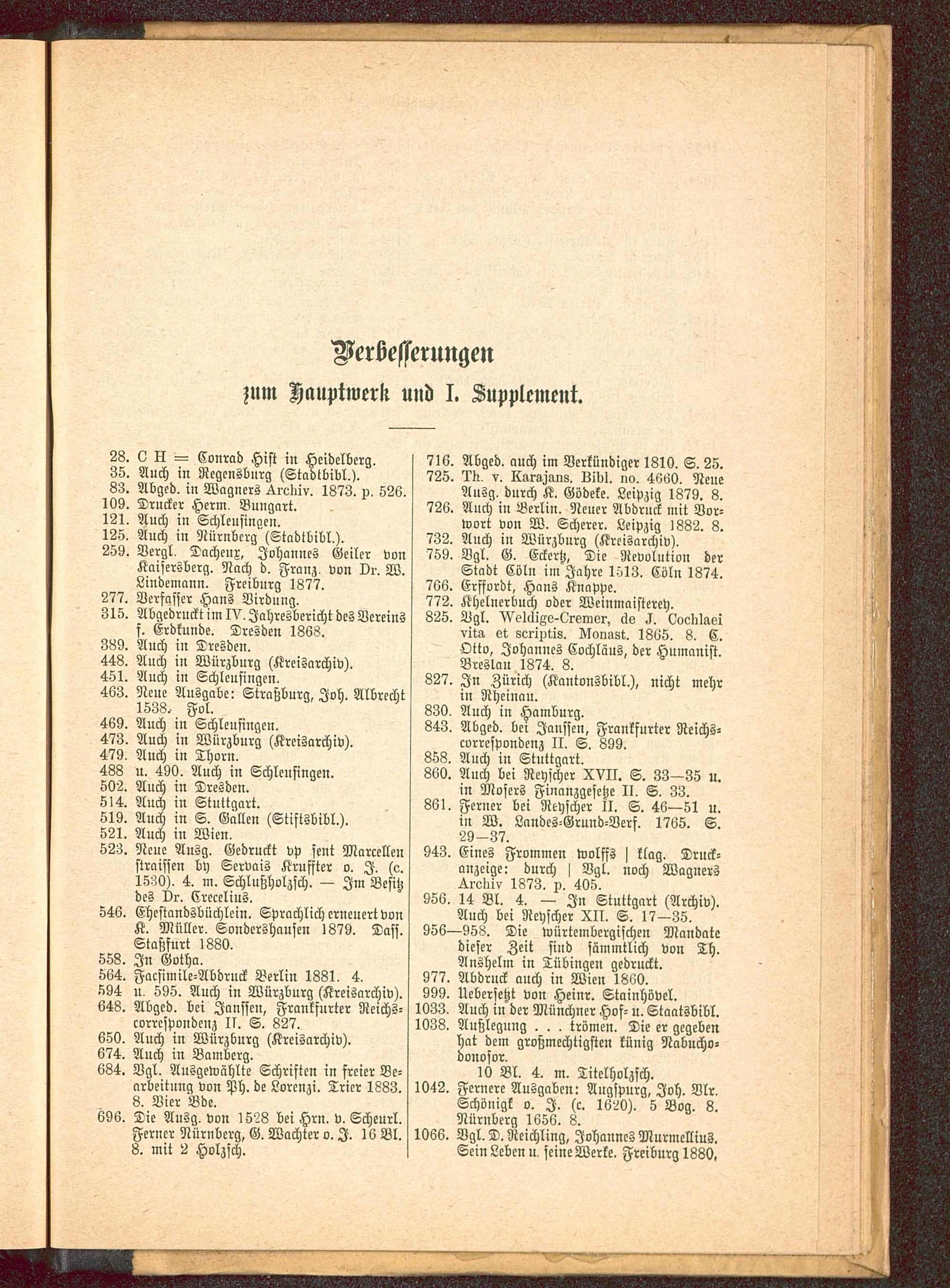 Mröesserungenzum Hauptwerk uud I. Supplement.