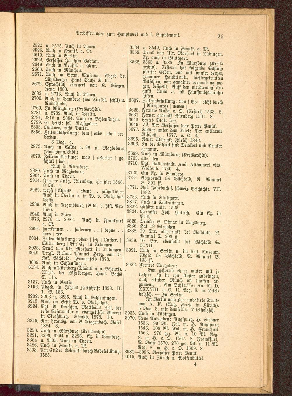 2522 u. 2575. Auch in Thorn.2526. Auch in Franks, a. M.2610. Auch in Berlin .2622. Verfasser Joachim Vadian .2649. Auch in Brüssel u. Gent.2666. Auch in München .