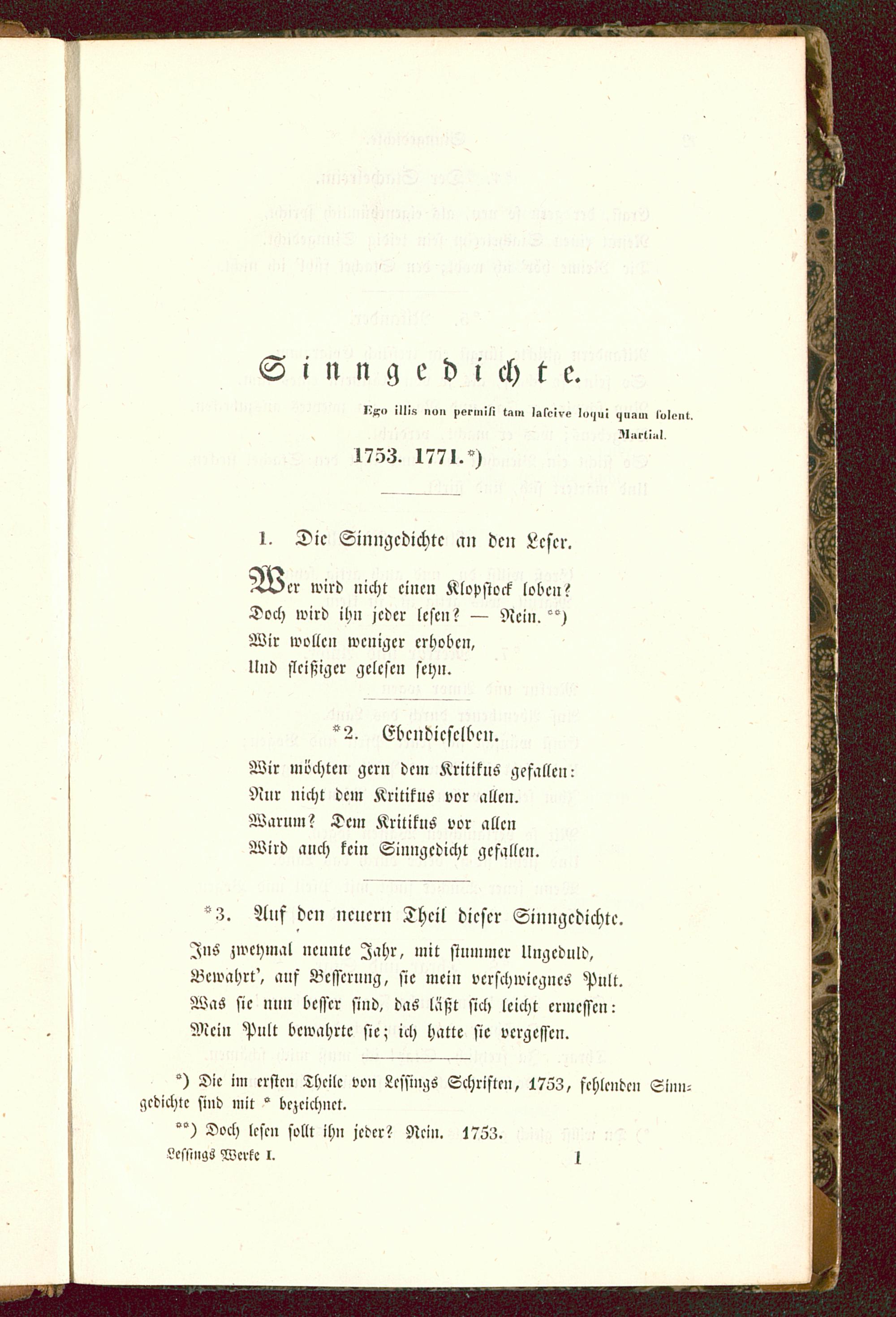 °) Die im erste» Theile von Lcssings Schriften, 1753, fehlenden Sinn-geeichte sind mit ° bezeichnet.