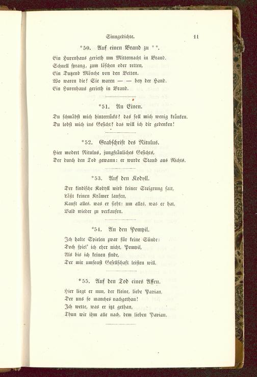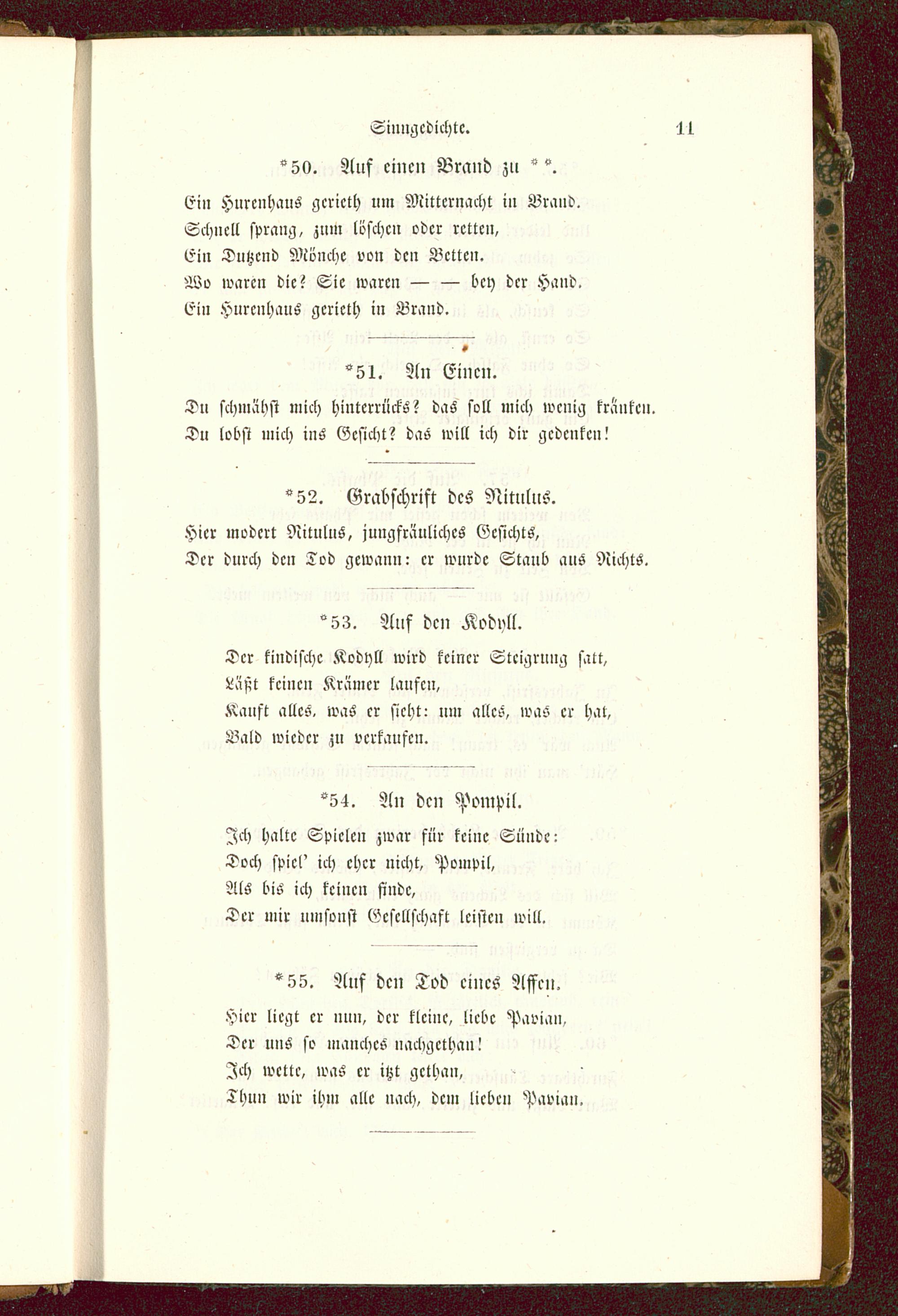 Ich halte Spielen zwar für keine Sünde:Doch spiel' ich eher nicht, Pompil,Als bis ich keinen finde,Der mir umsoiist Gesellschaft leisten will.