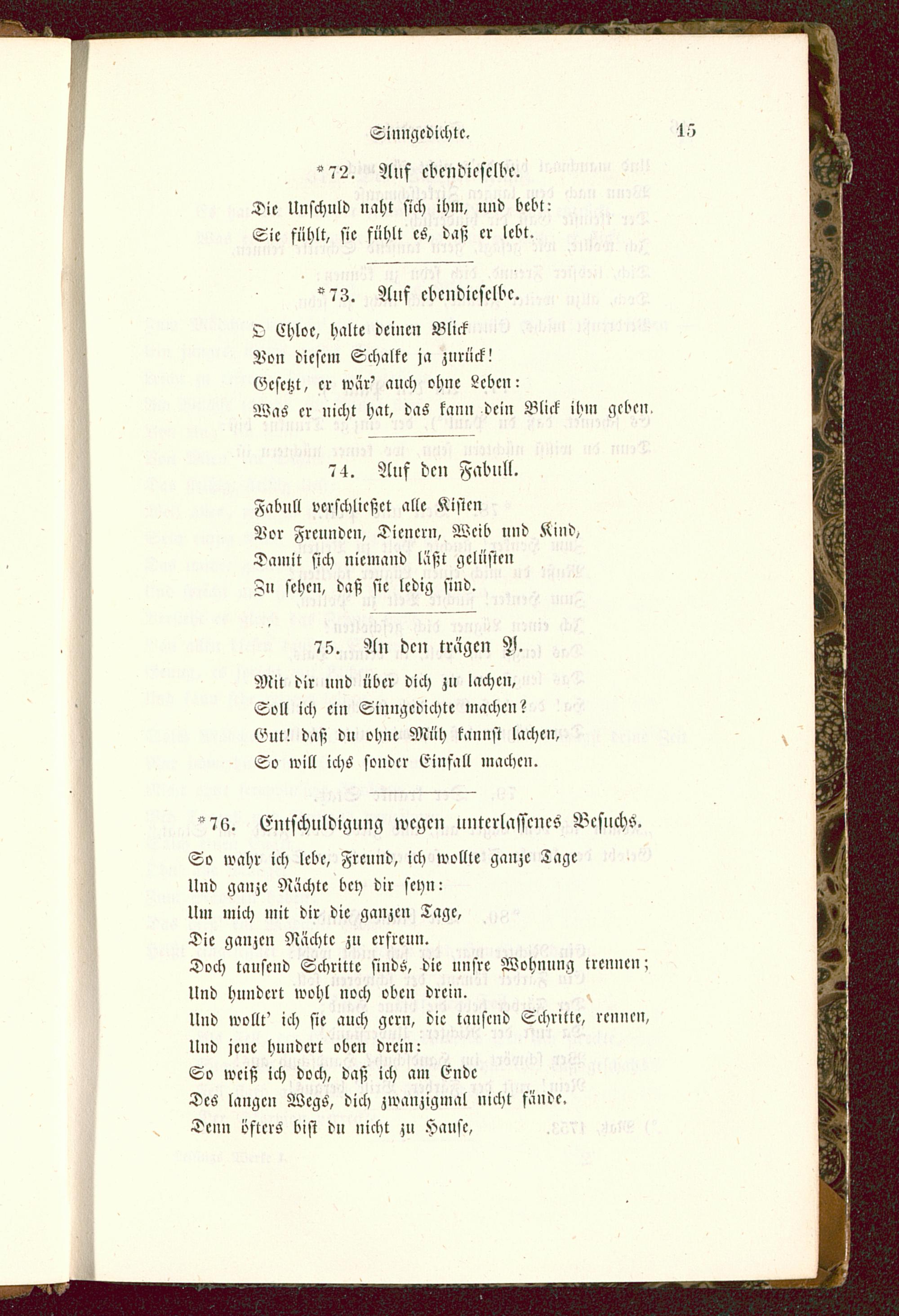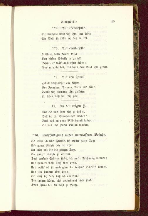 So wahr ich lebe, Freund, ich wollte ganze ZageUnd ganze Rächte bey dir seyn:lim mich mit dir die ganzen Tage,Die ganzen Nächte zu erfreun.