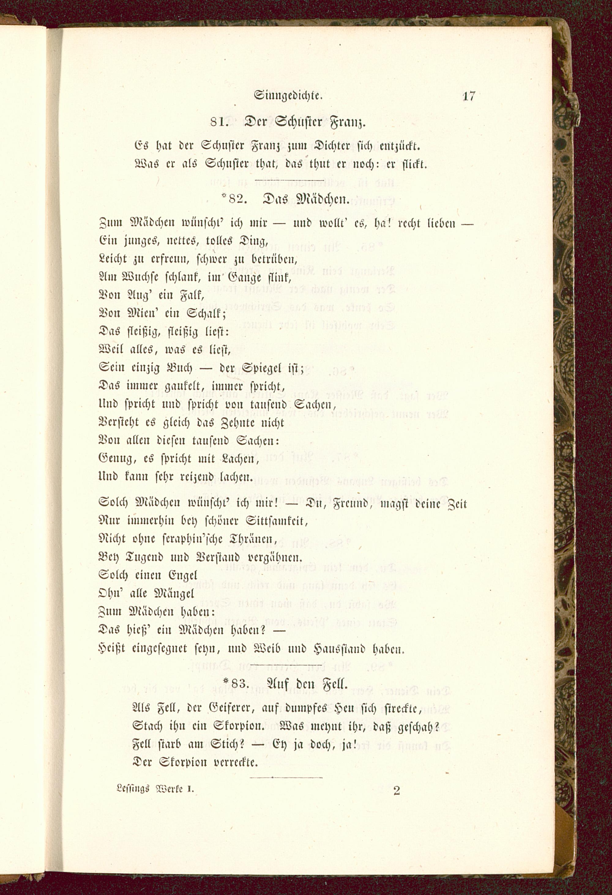 Sinngedichte. 1781. Der Schuster Franz.