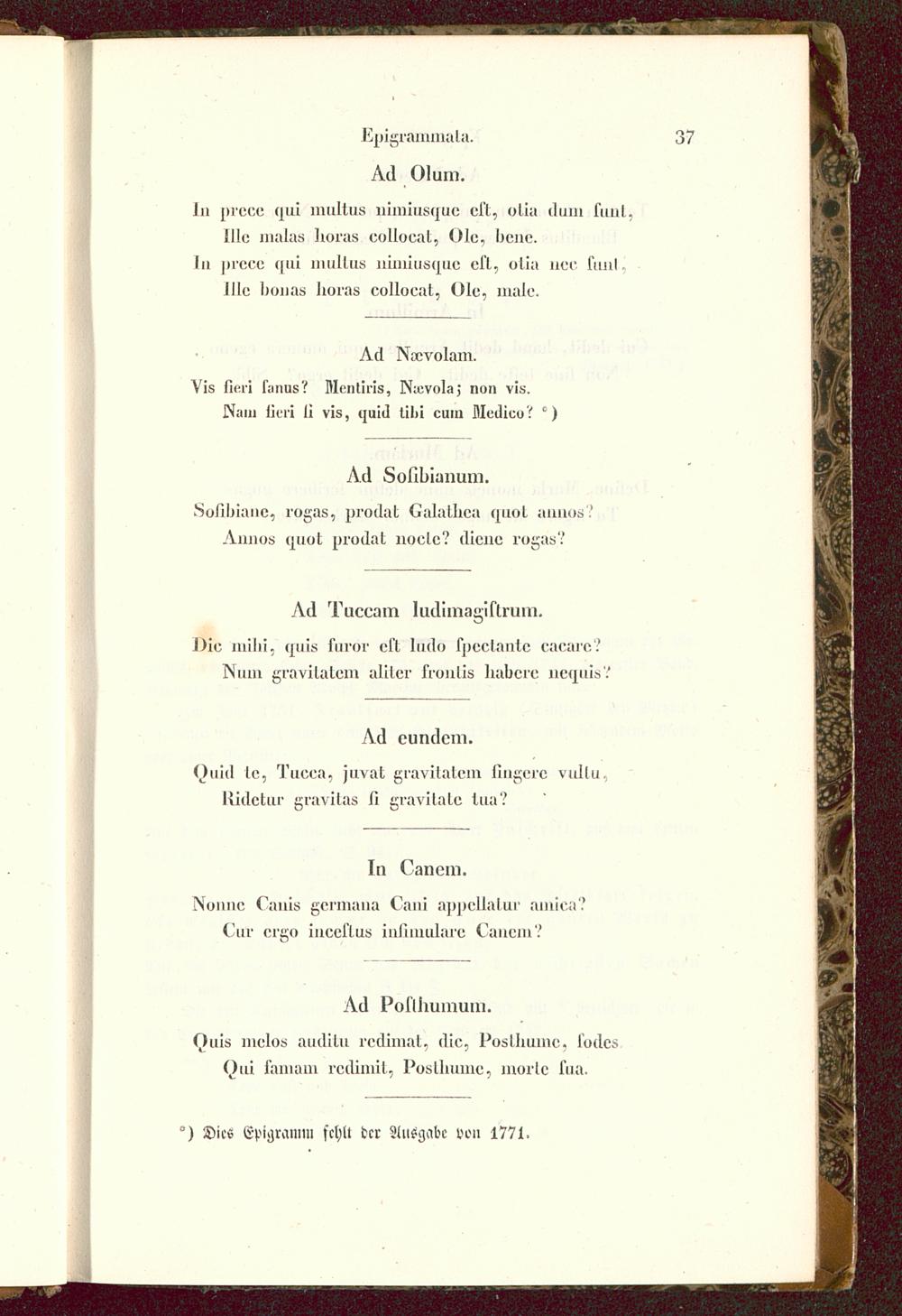 °) Dies Epigramm schll der Auegabc vo» 1771 >