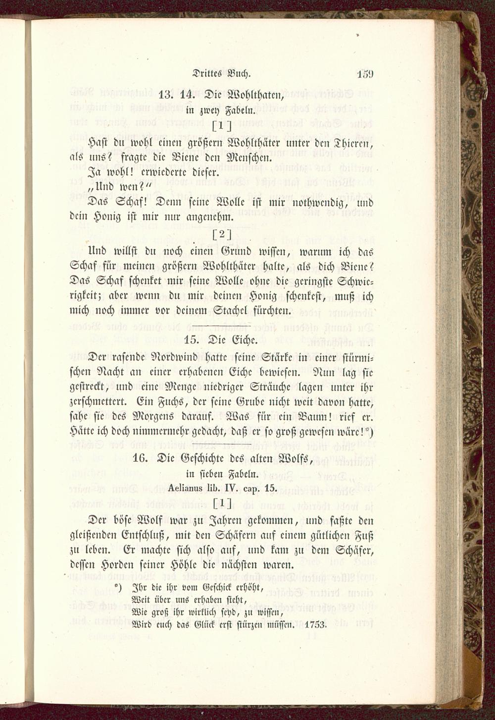 Und willst du noch einen Grund wissen, warum ich dasSchaf für meinen großem Wohlthäter halte, als dich Biene?Das Schaf schenket mir seine Wolle ohne die geringste Schwie-rigkeit; aber wenn du mir deinen Honig schenkest, muß ichmich noch immer vor deinem Stachel fürchten.