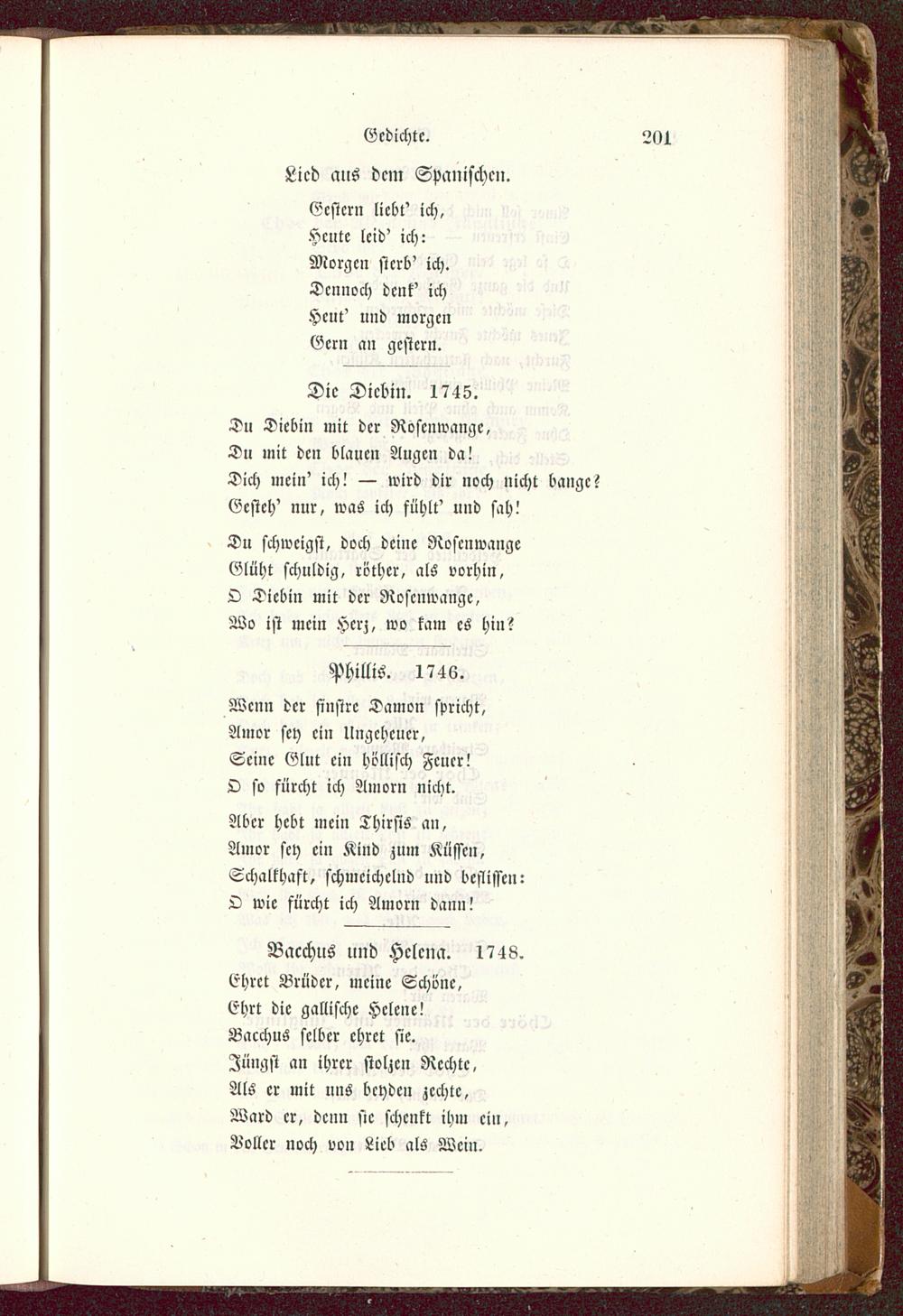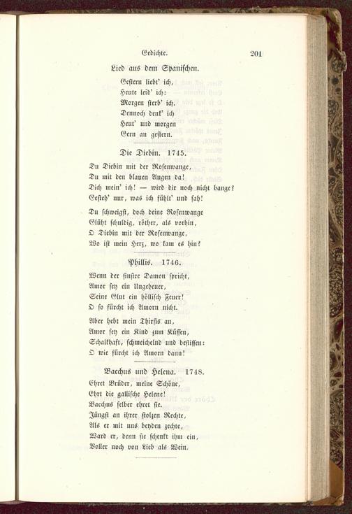 Du schweigst, doch deine RoscnwangeGlüht schuldig, röther, als vorhin,O Diebin mit der Roscnwange,Wo ist mein Herz, wo kam es hin?