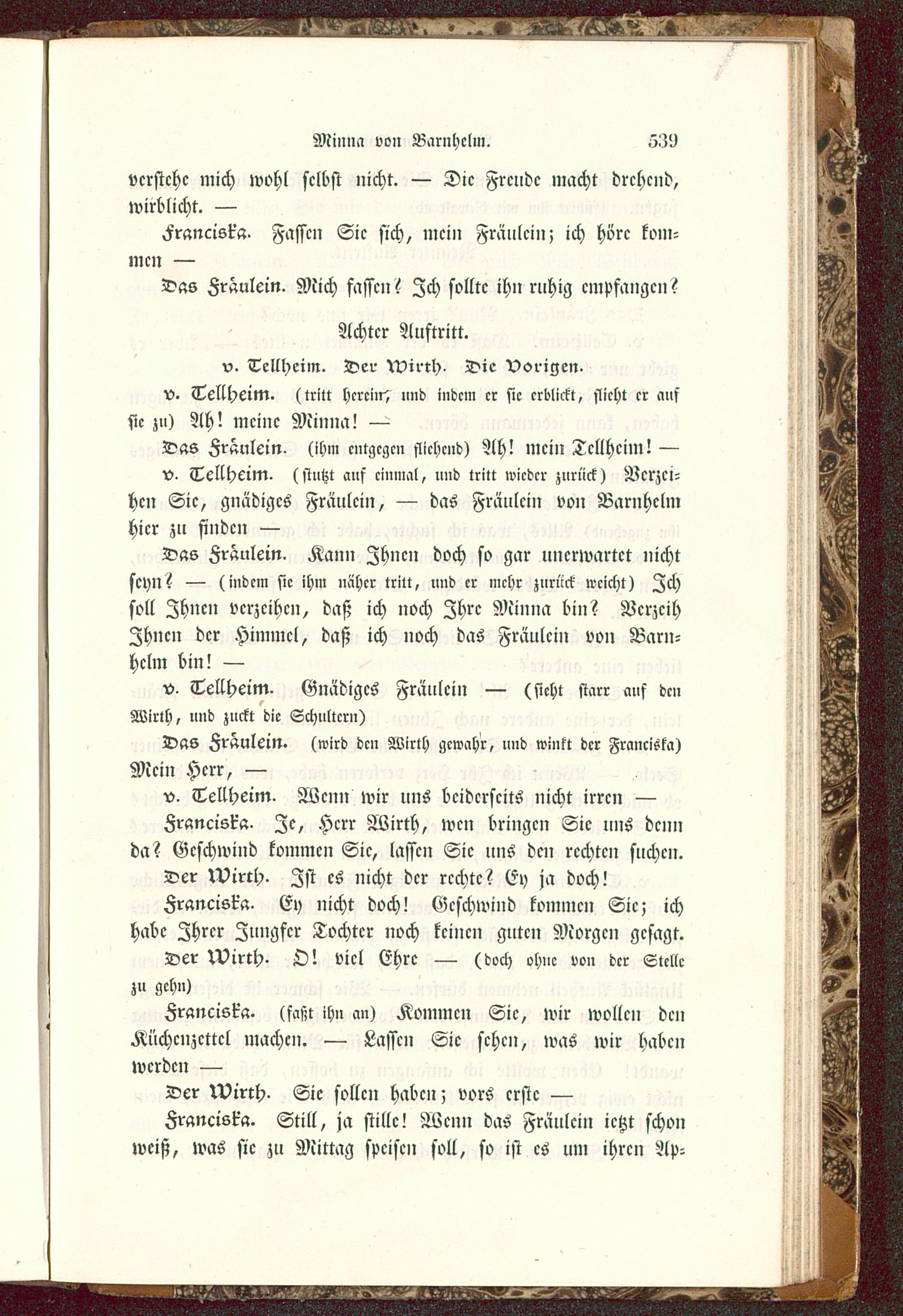 Das Fräulein. Kann Ihnen doch so gar unerwartet nichtseyn? — (indem sie ihm näher tritt, und er mehr zurück weicht) Ichsoll Ihnen verzeihen, daß ich noch Ihre Minna bin? VerzeihIhnen der Himmel, daß ich noch das Fräulein von Barn-hclm bin! —