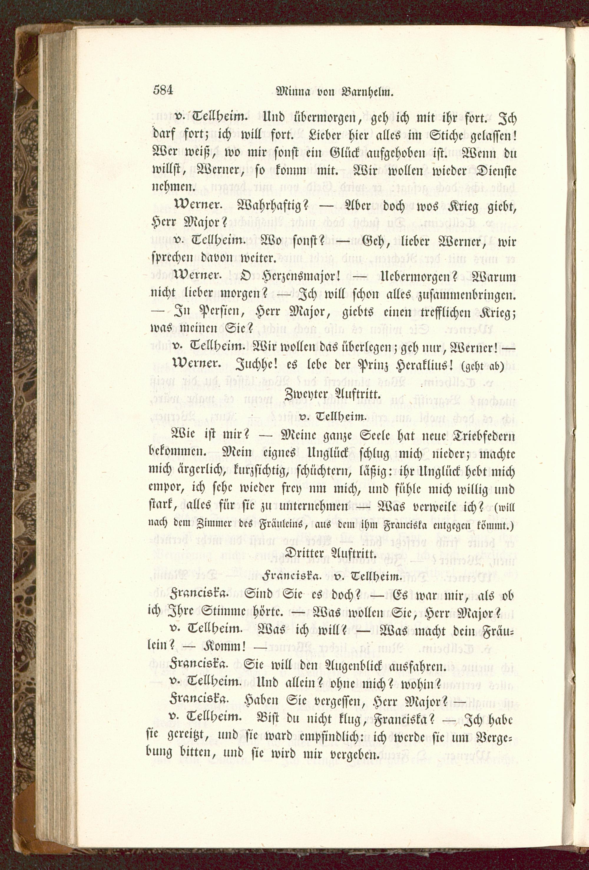 v. Tellheim. Bist du nicht klug, Franciska? — Zch habesie gcrcitzt, und sie ward empfindlich: ich werde sie um Verge-bung bitten, und sie wird mir vergeben.