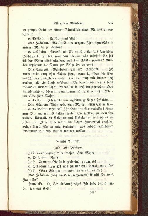 v. Tellheim. Sophistinn! So entehrt sich das schwächereGeschlecht durch alles, was dem stärker» nicht ansteht? So sollsich der Mann alles erlauben, was dem Weibe geziemet? Wel-ches bestimmte die Natur zur Stutze des andern?