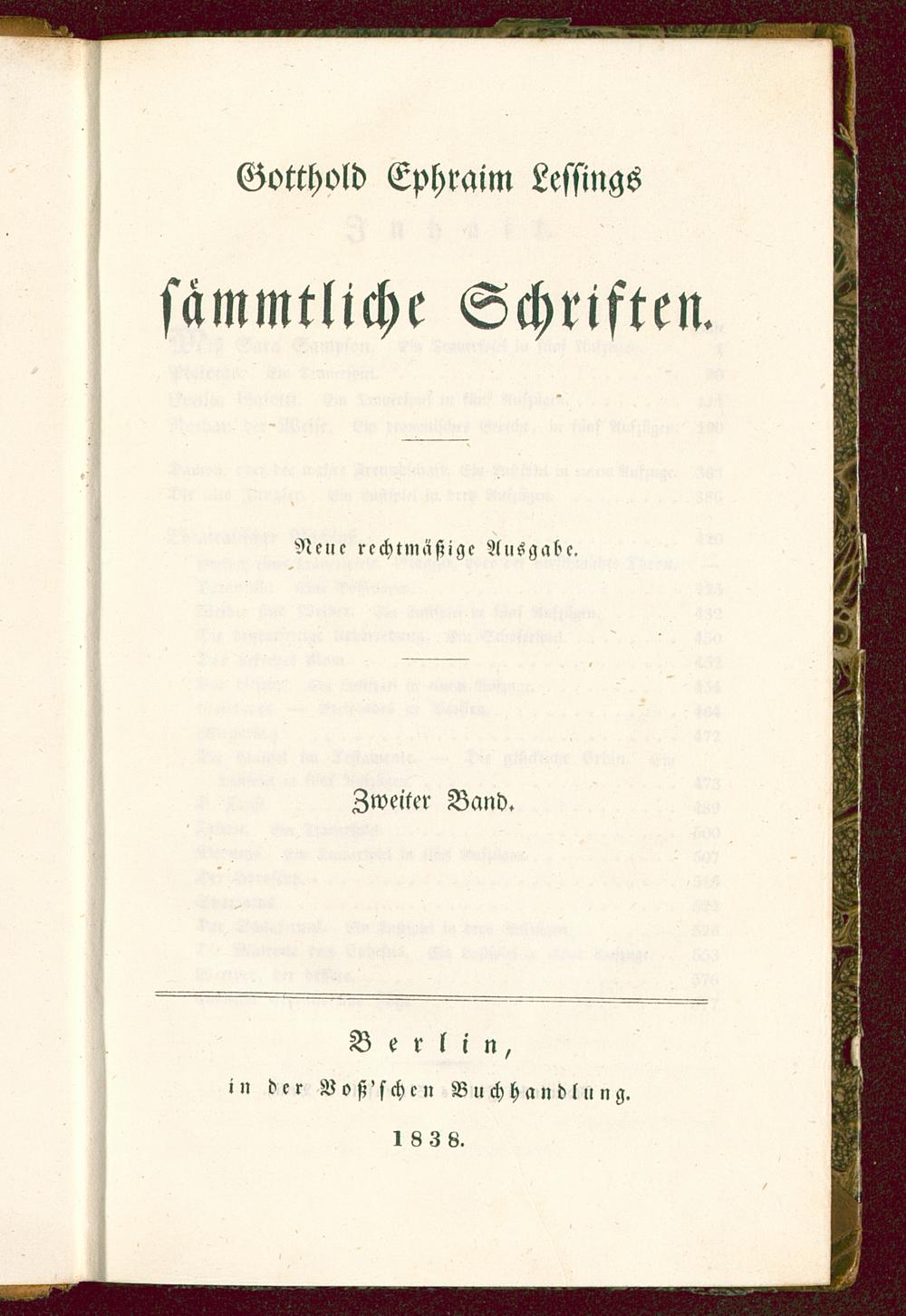 Gotthold Ephraim Leffmgssämmtliche Schriften.Neue rechtmäßige Ausgabe.Zweiter Band.in derBerlin ,Boß' schcn Buchhandlung.1 83 8.