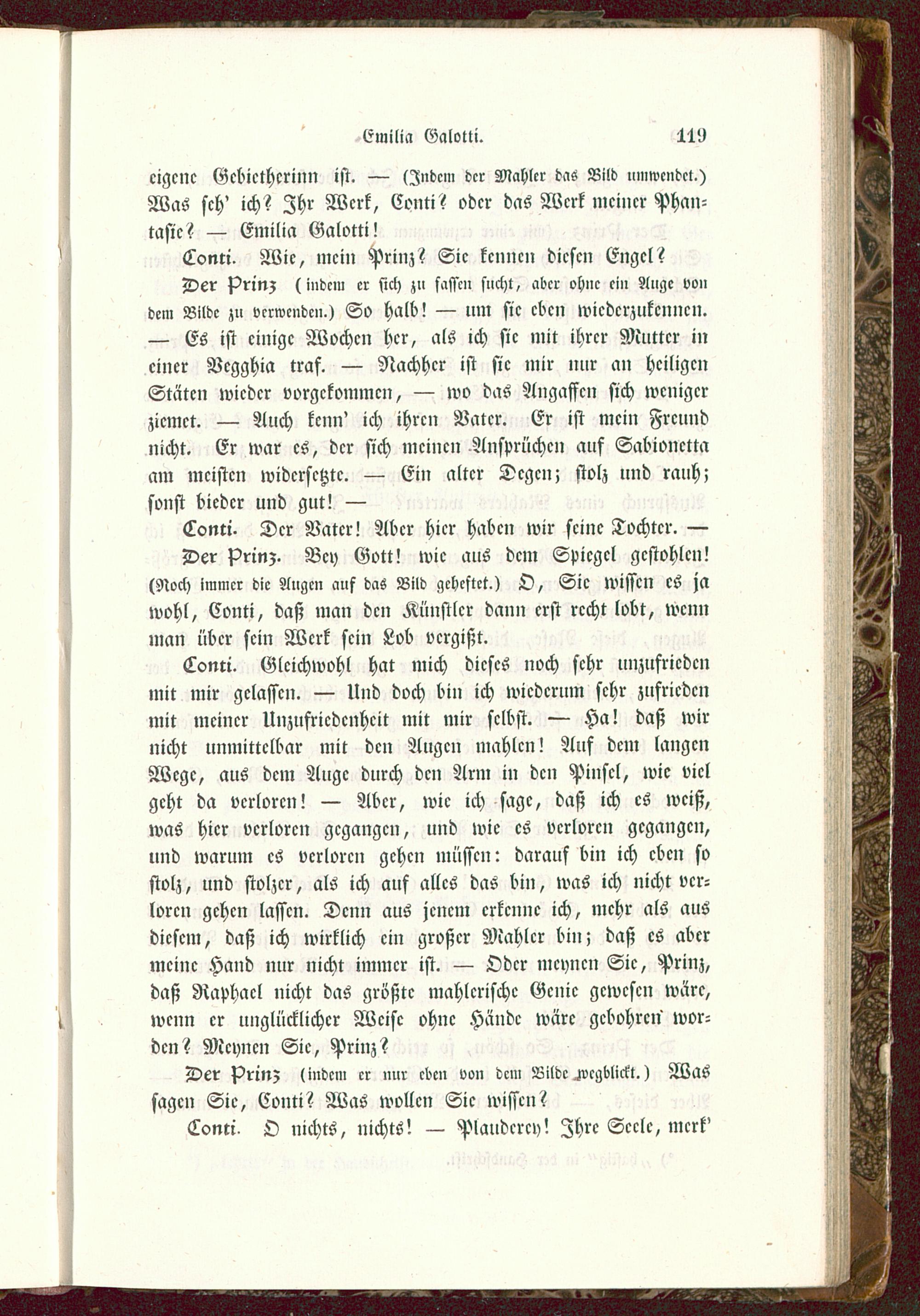 cigcnc Gcbictherinn ist. — (Indem dcr Mahler das Bild umwendet.)Was sch' ich? Ihr Werk, Conti? oder das Werk mciiicr Phan-tasie? — Emilia Galotti!