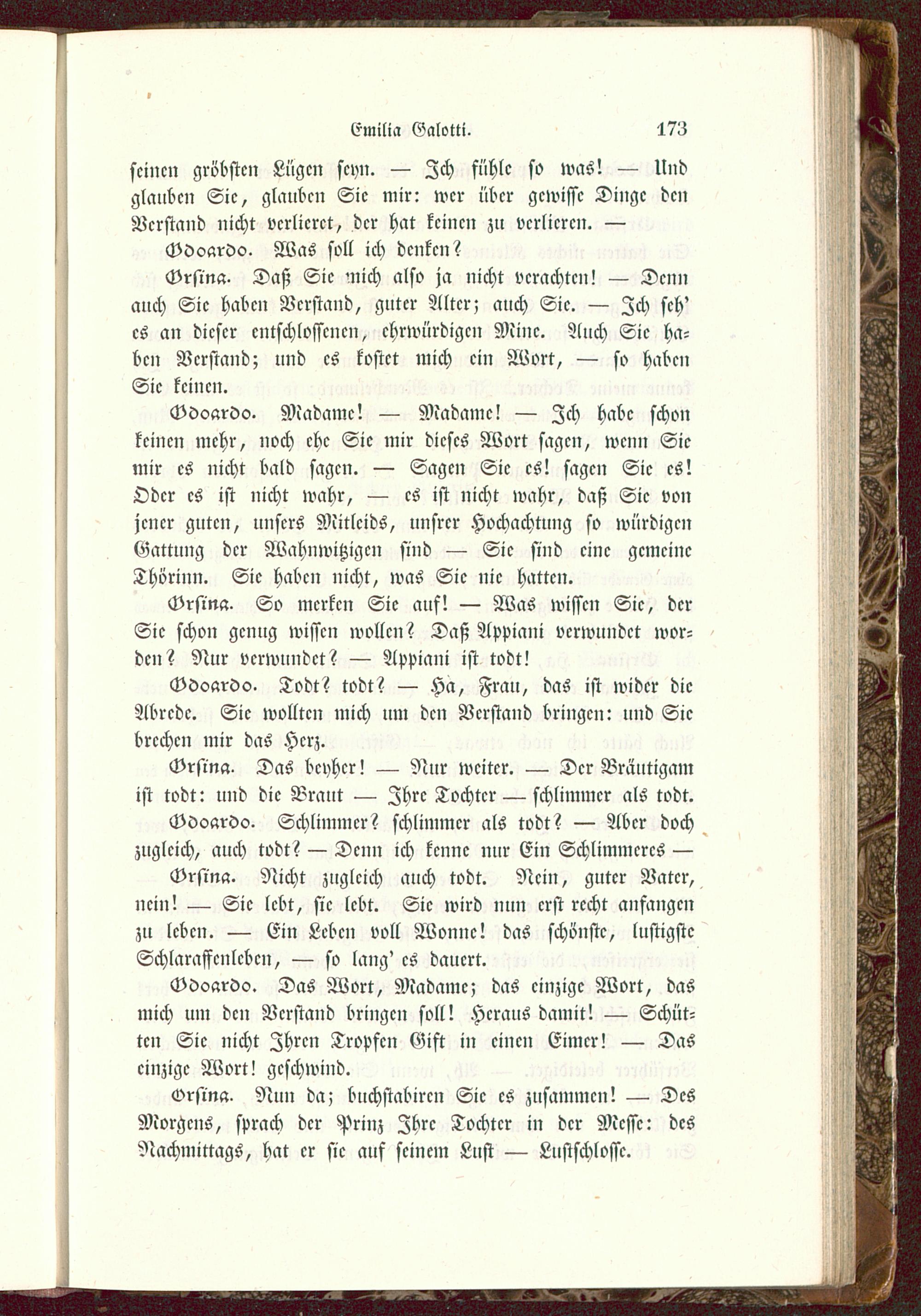 Gdoardo. Das Wort, Madame; das einzige Wort, dasmich um den Verstand bringen soll! Heraus damit! — Schüt-ten Sie nicht Zhrcn Tropfen Gift in einen Eimer! — Daseinzige Wort! geschwind.