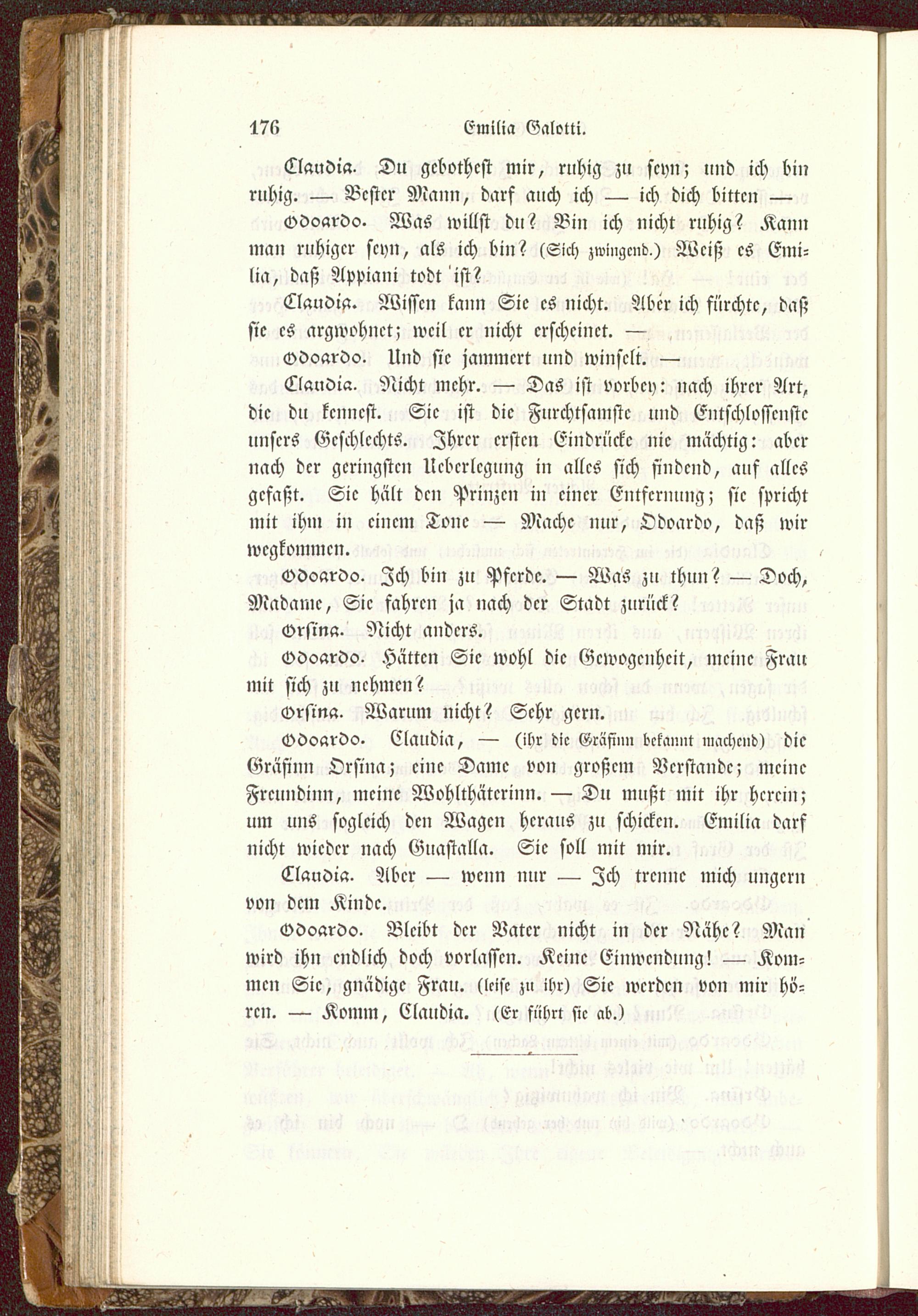 Odoardo. Ich bin zu Pferde. — Was zu thun? — Doch,Madame, Sie fahren ja nach der Stadt zurück?Orsina. Nicht anders.