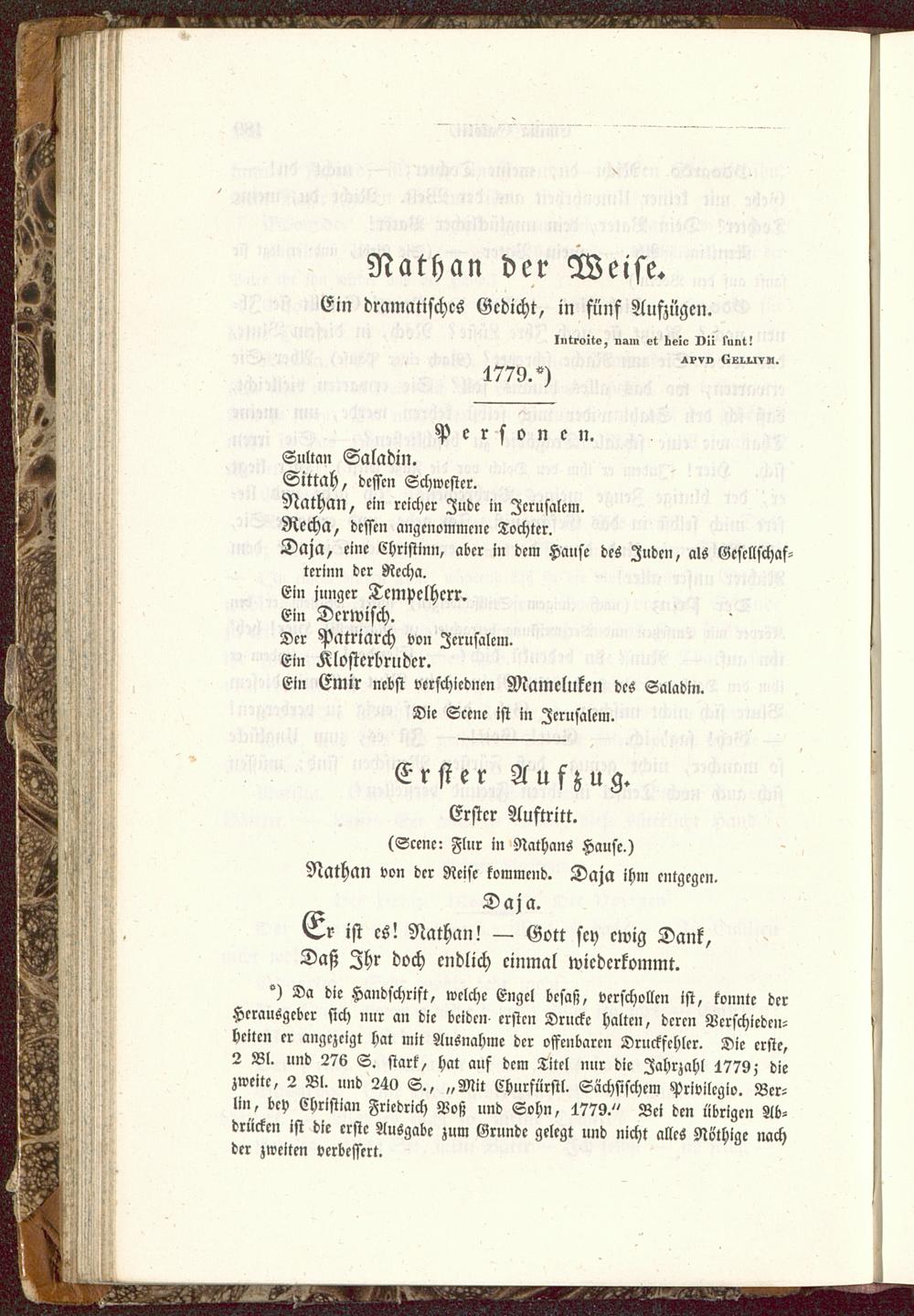 Erster Austritt.(Scene: Flur in Nathans Hause,)Nathan von der Reise kommend. Daja ihm entgegen.Daja.