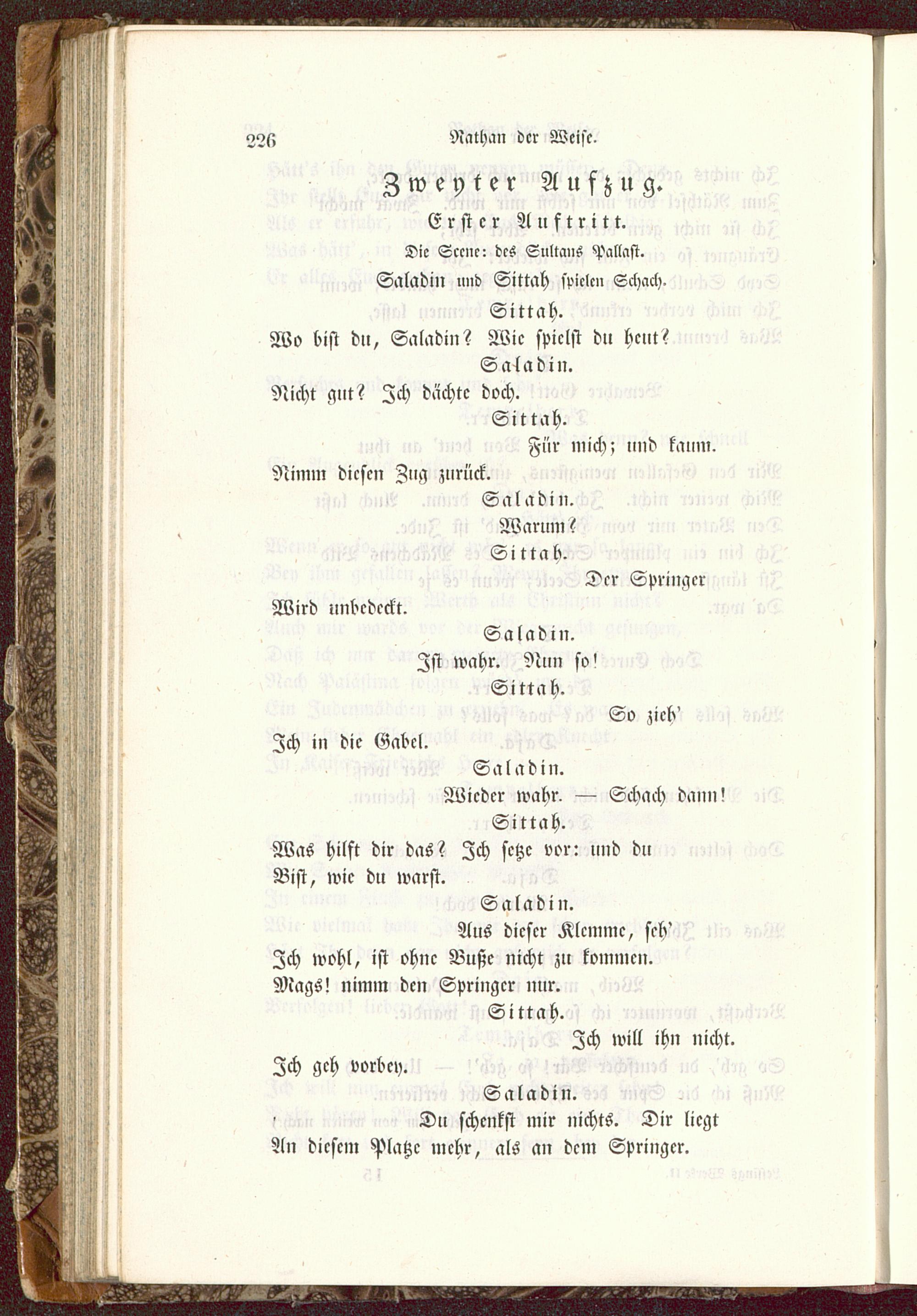 Erster Auftritt.Die Scene: des Sultans Pallast.Saladin und Sittcch spielen Schach.Sittah.