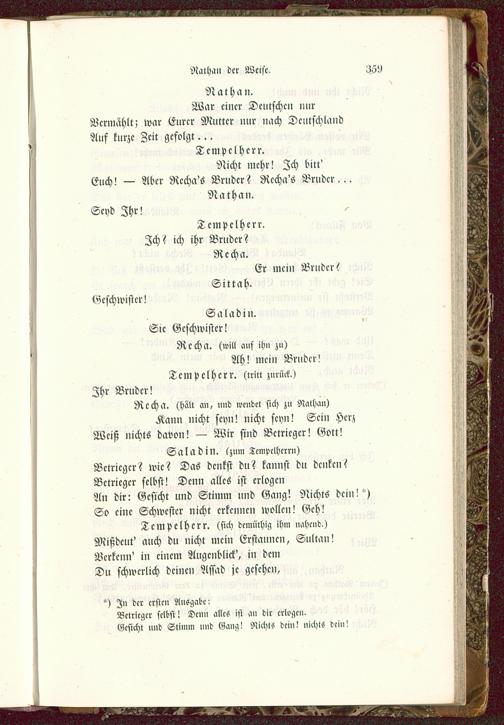 Tempelherr, (sich demüthig ihm nahend.)Mißdeut' auch du nicht mein Erstaunen, Sultan!Ncrkcnn' in einem Augenblick', in demDu schwerlich deinen Assad je gesehen,