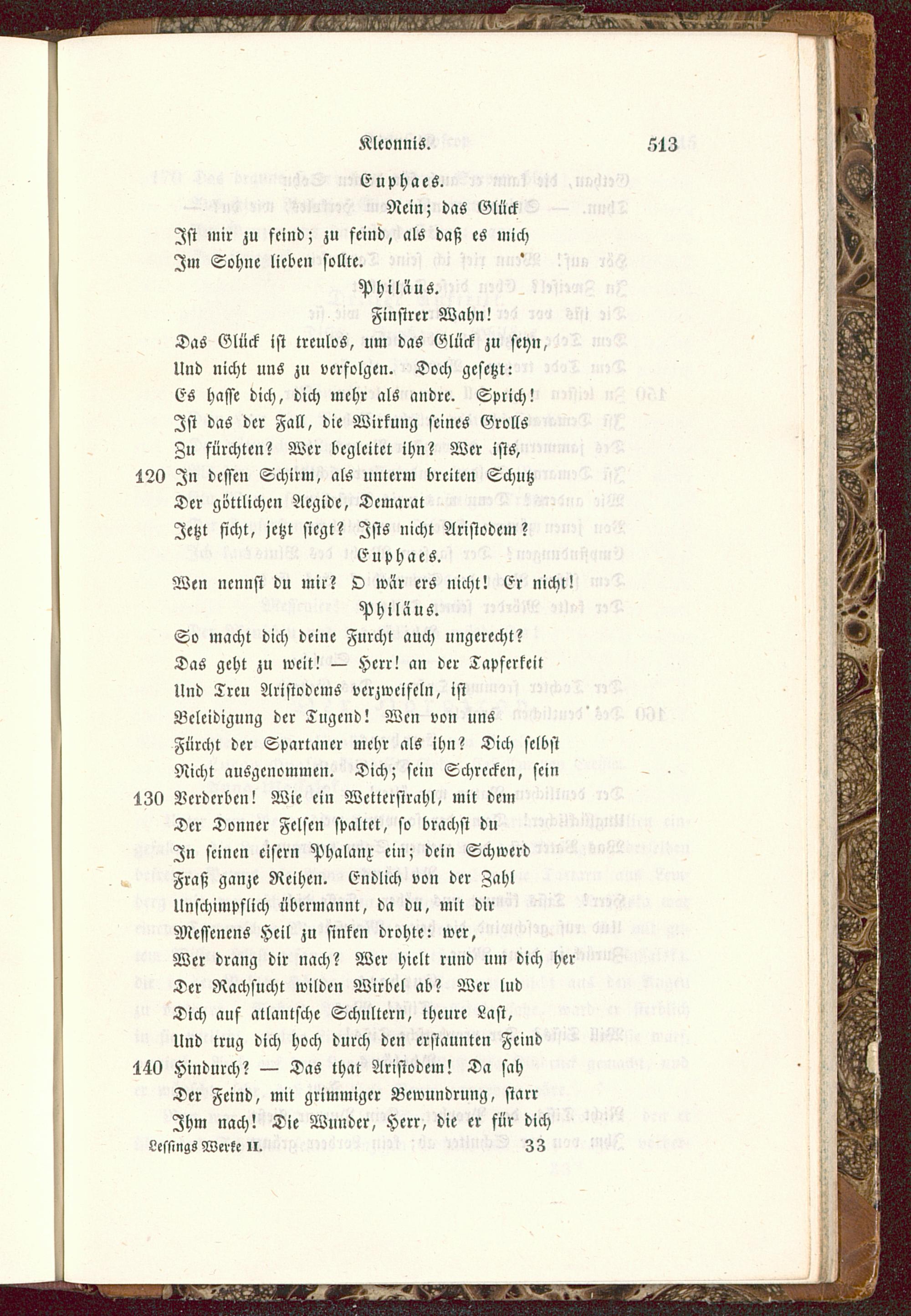 140 Hindurch? — Das that Aristodem! Da sahDer Feind, mit grimmiger Bewundrung, starrIhm nach! Die Wunder, Herr, die er für dichLessings Werke II. ZZ