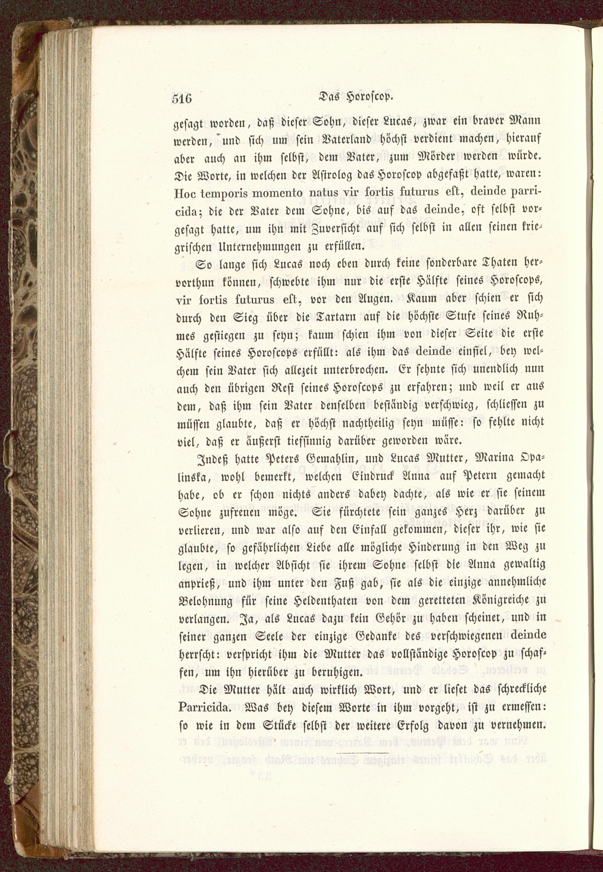 gesagt worden, daß dieser Sohn, dieser LucaS, zwar ein braver Mannwerden,'und sich um sein Vaterland höchst verdient machen, hieraufaber auch an ihm selbst, dem Vater, zum Mörder werden würde.Die Worte, in welchen der Astrolog das Horoscop abgefaßt hatte, waren:Ilov tomporis momento natus vii' koi'kis kuturu5 ekt, lleinäs parri-oicla; die der Vater dem Sohne, bis auf das äolndc, oft selbst vor-gesagt hatte, um ihn mit Zuversicht auf sich selbst in allen seinen krie-grischcn Unternehmungen zu erfüllen.