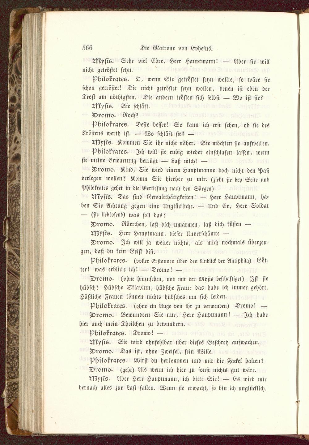Mysis. Sie wird ohnfchlbar über dieses Geschrey aufwachen.Dromo. Das isi, ohne Zweifel, sei» Wille.Philokratcs. Wirst du herkomme» uud mir die Fackel halten?Dromo. (geht) AIS wenn ich hier zu sonst nichts gut wäre.NIysis. Aber Herr Hauptmann, ich bitte Sie! — ES wird nurhernach alles zur Last sallcn. Wen» sie erwacht, so bin ich unglücklich.