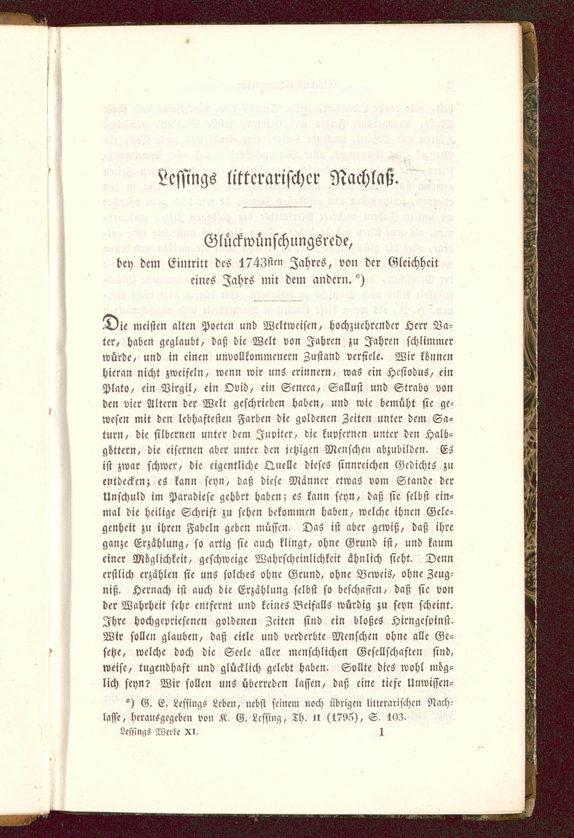Glückwünschungsrede, bey dem Eintritt des 1743sten Jahres, von der Gleichheit eines Jahrs mit dem andern.