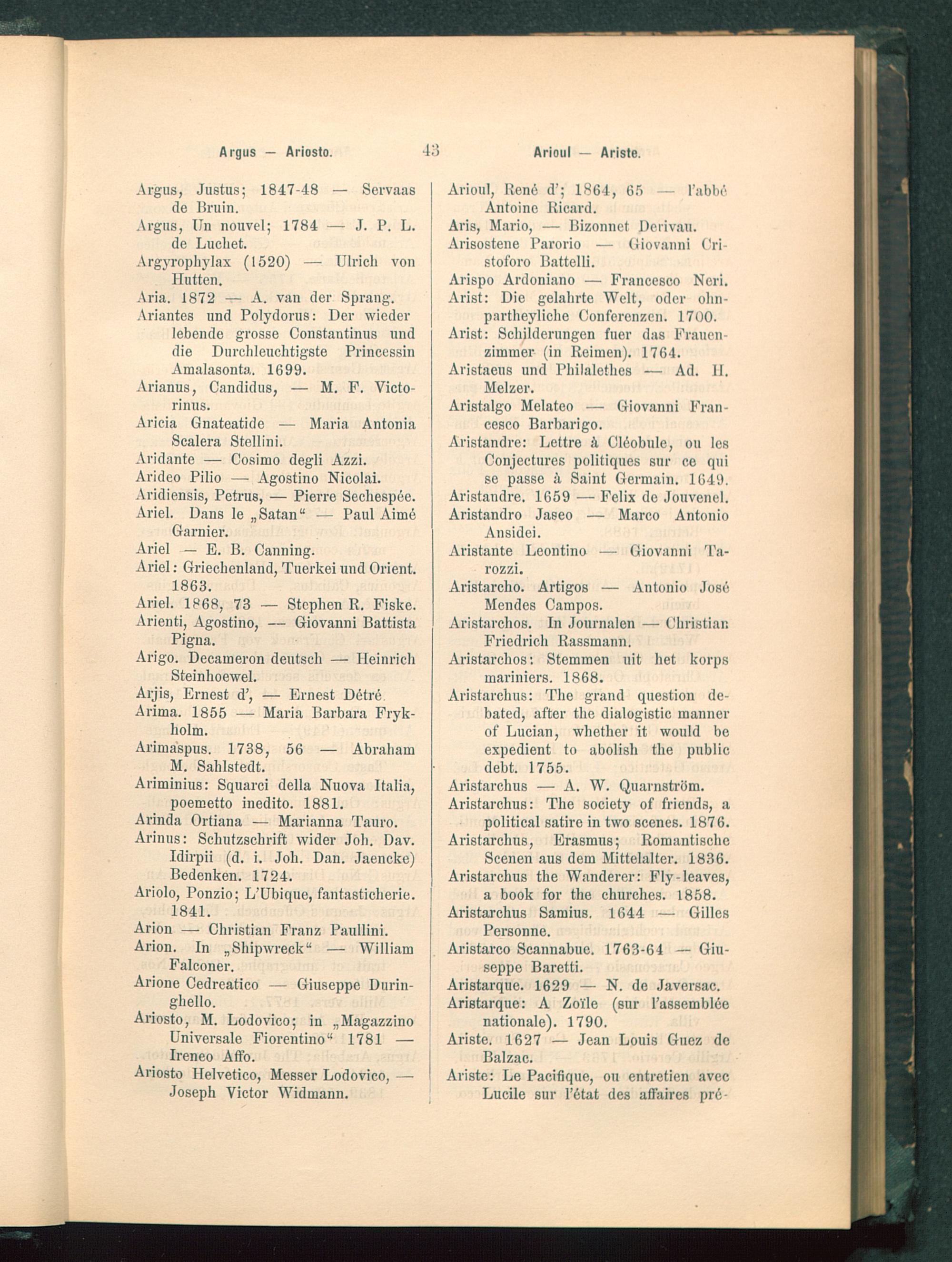 Lexicon pseudonymorum : Wörterbuch der Pseudonymen aller Zeiten und Völker oder Verzeichniss jener Autoren, die sich falscher Namen bedienten / Emil Weller