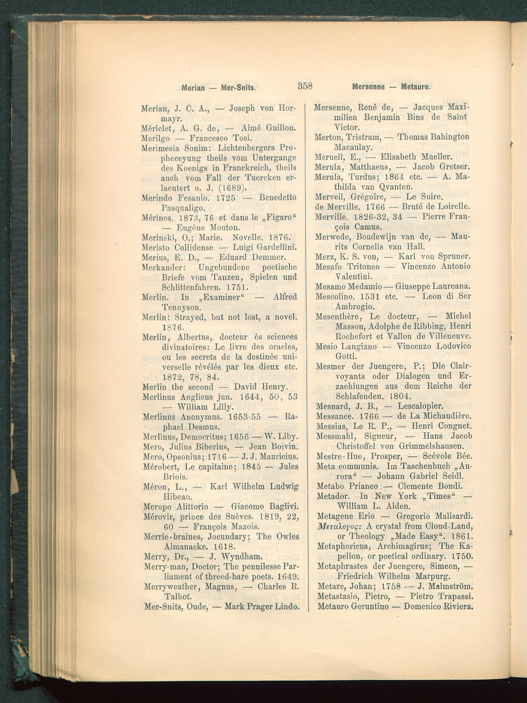 Lexicon pseudonymorum : Wörterbuch der Pseudonymen aller Zeiten und Völker oder Verzeichniss jener Autoren, die sich falscher Namen bedienten / Emil Weller