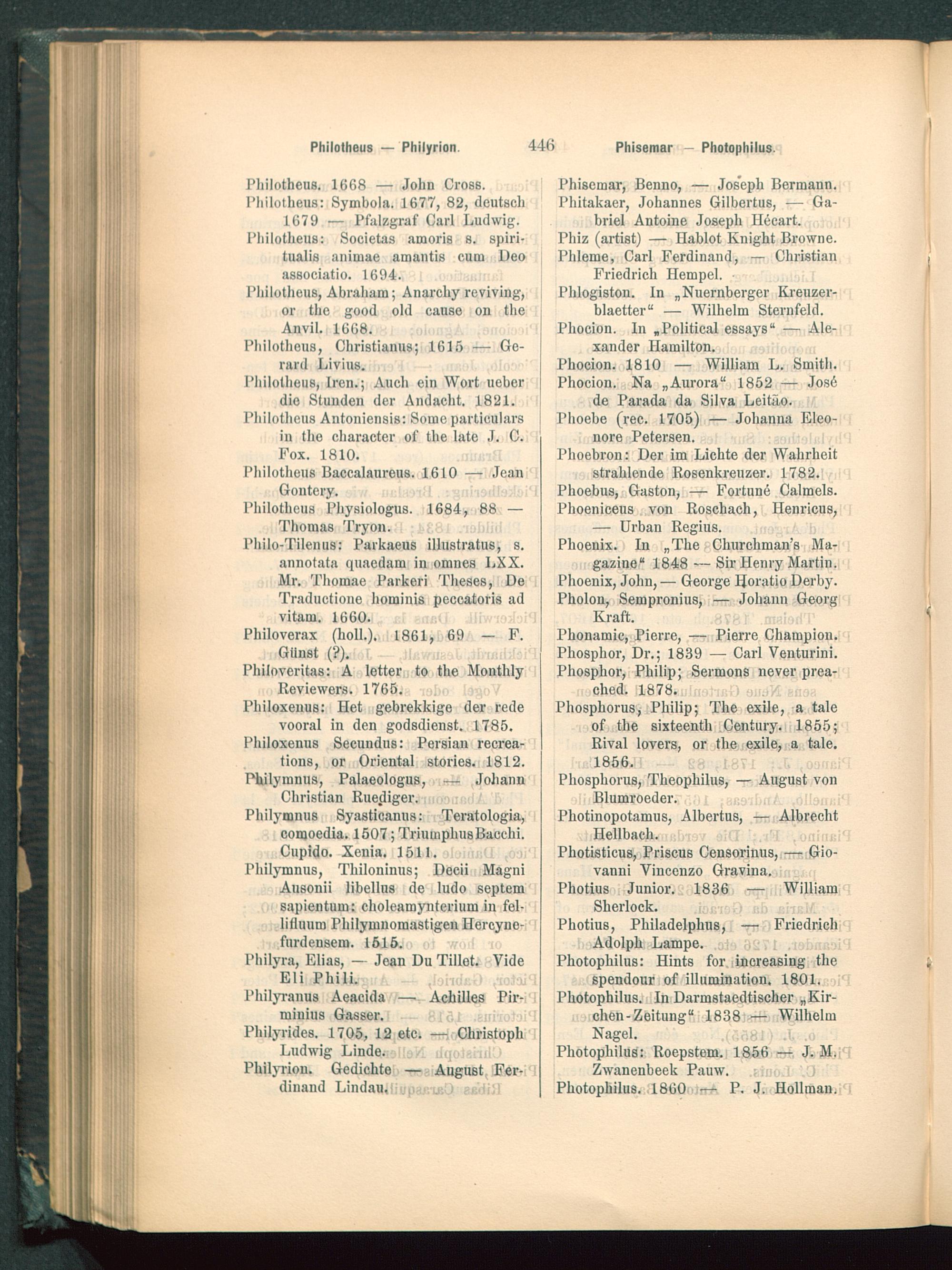 Lexicon pseudonymorum : Wörterbuch der Pseudonymen aller Zeiten und Völker oder Verzeichniss jener Autoren, die sich falscher Namen bedienten / Emil Weller