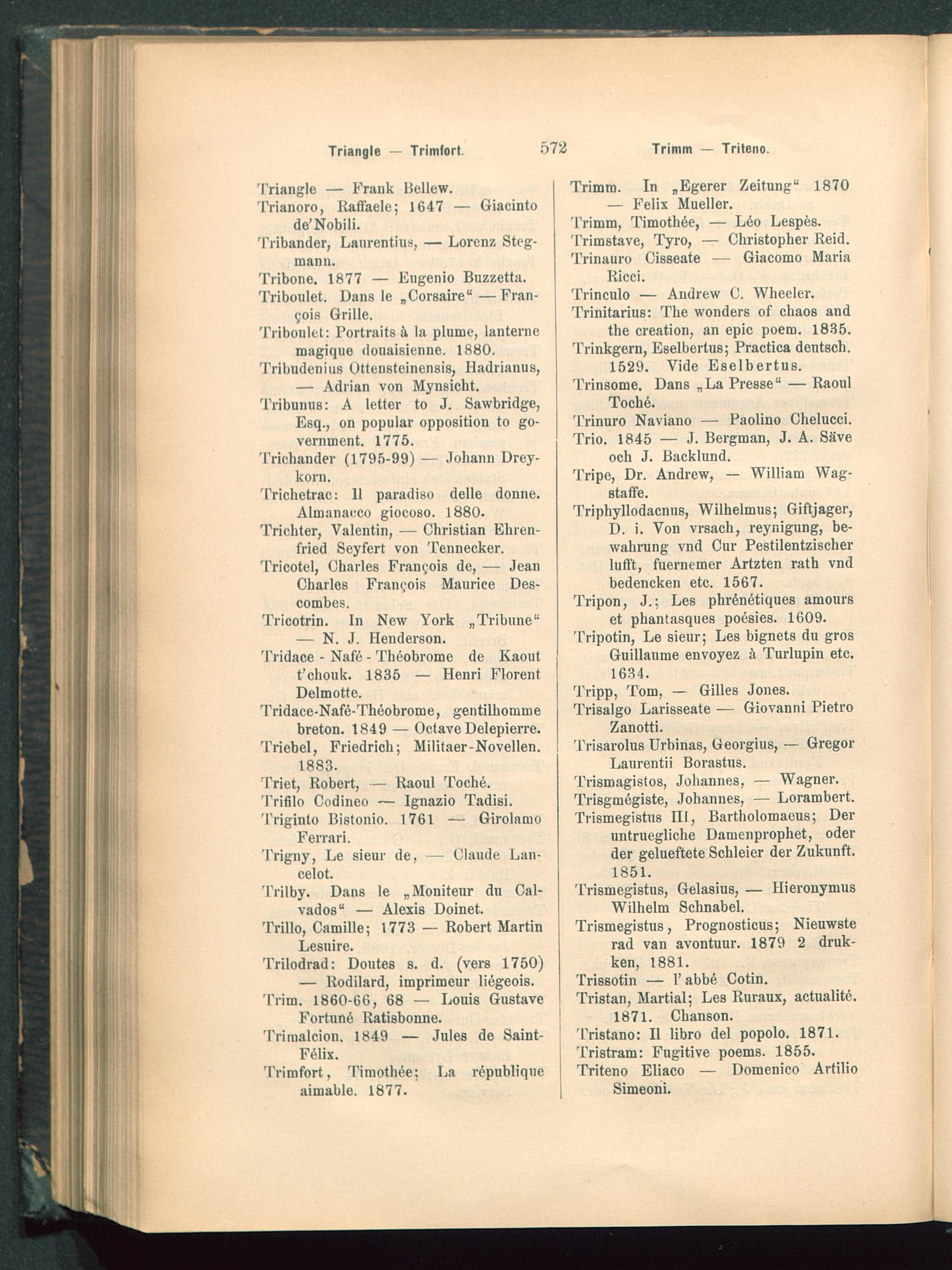 Lexicon pseudonymorum : Wörterbuch der Pseudonymen aller Zeiten und Völker oder Verzeichniss jener Autoren, die sich falscher Namen bedienten / Emil Weller