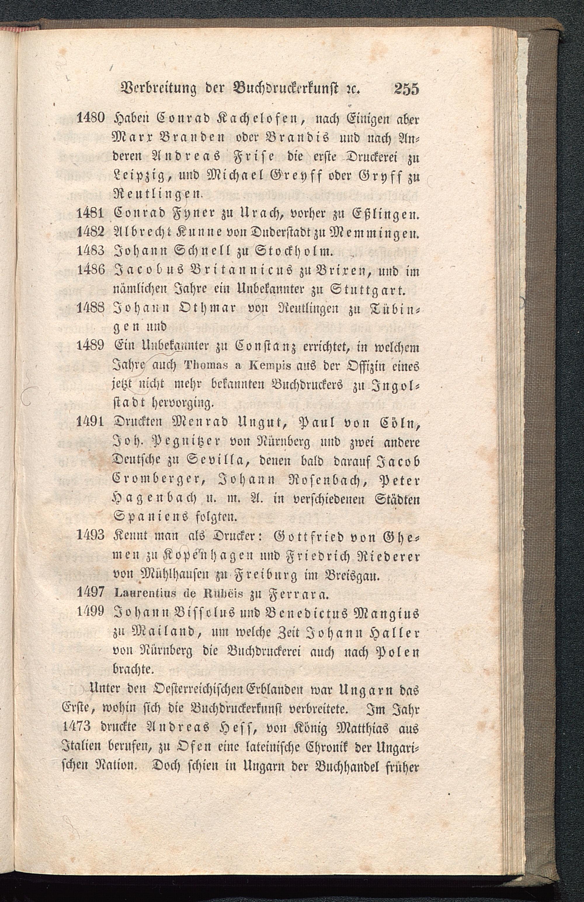 Siebenter Abschnitt. Verbreitung der Buchdruckerkunst noch im 15ten Jahrhunderte in andere Länder und Städte.