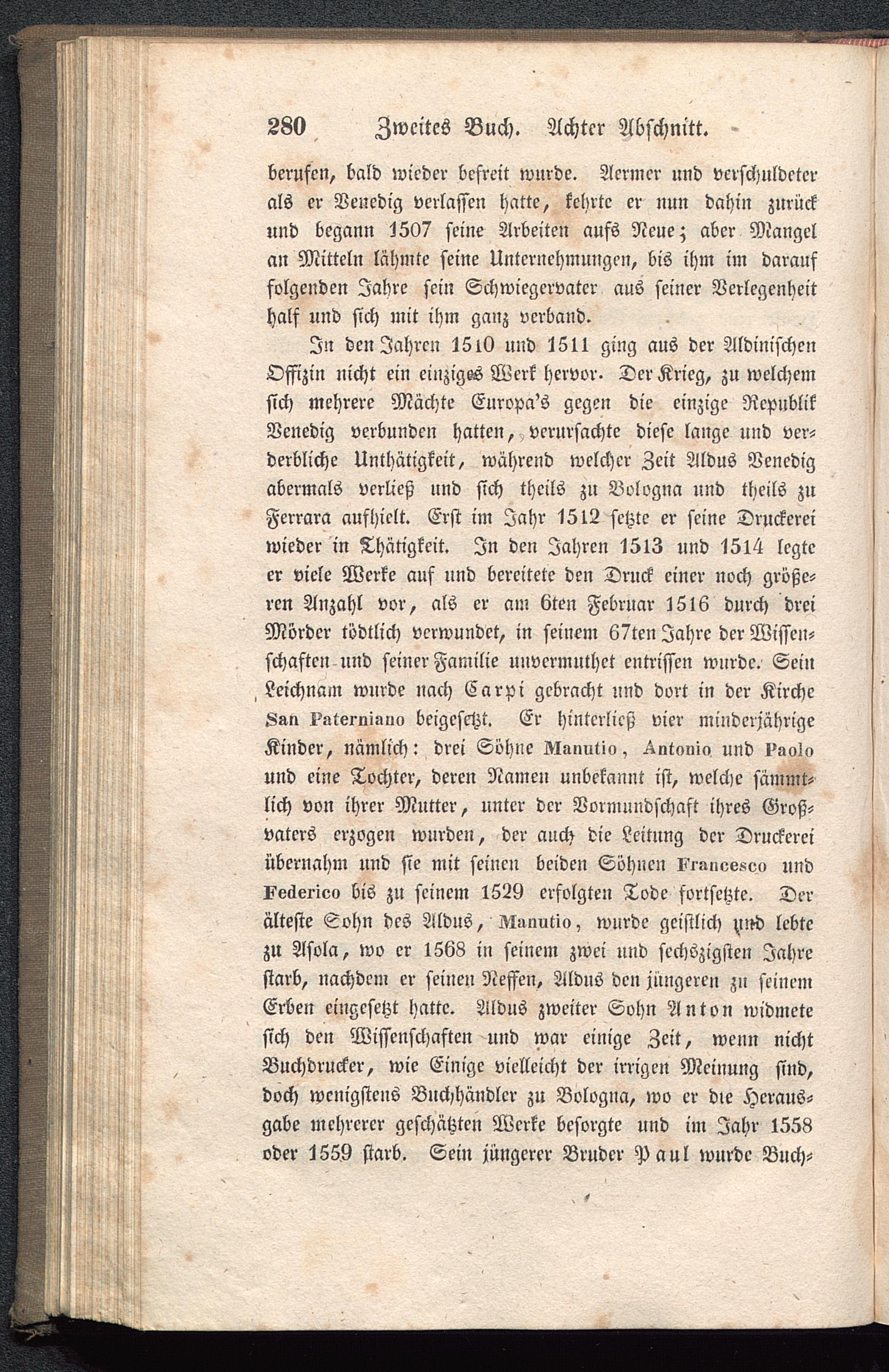 Achter Abschnitt. Berühmte Typographen, die sich vom 16ten Jahrhunderte an in verschiedenen Ländern durch Vervollkommnung ihrer Kunst und durch schönen und correkten Druck der aus ihren Offizinen hervorgegangenen Werke besonders ausgezeichnet haben.