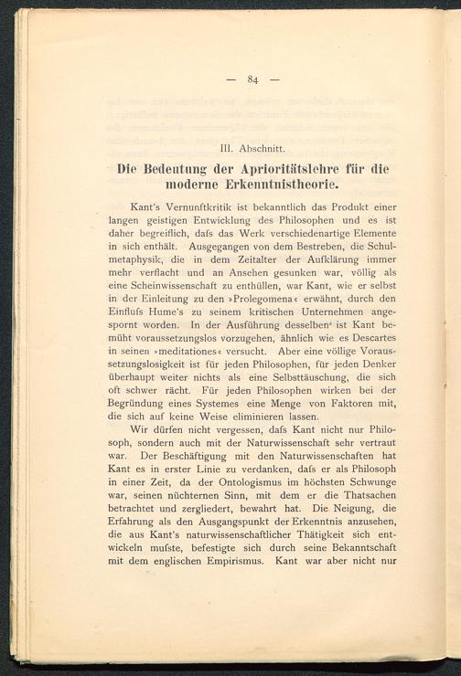 Die Weiterbildung der Kant'schen Aprioritätslehre bis zur Gegenwart : ein Beitrag zur Geschichte der Erkenntnistheorie / Rudolf Eisler