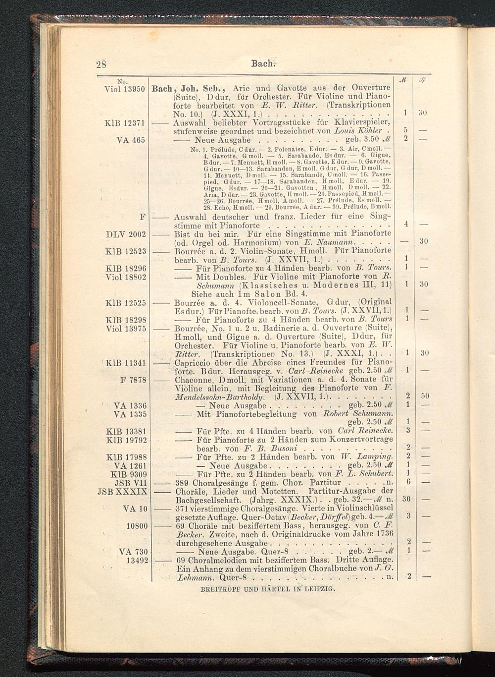 Verzeichnis des Musikalien-Verlages von Breitkopf & Härtel in Leipzig vollständig bis 1902