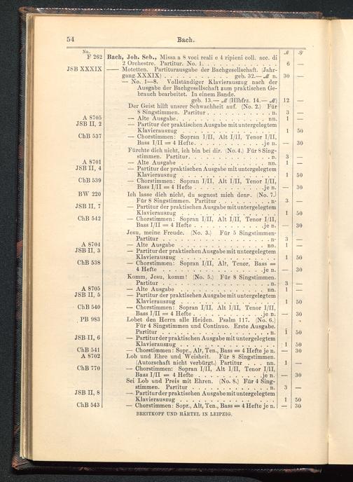 Verzeichnis des Musikalien-Verlages von Breitkopf & Härtel in Leipzig vollständig bis 1902