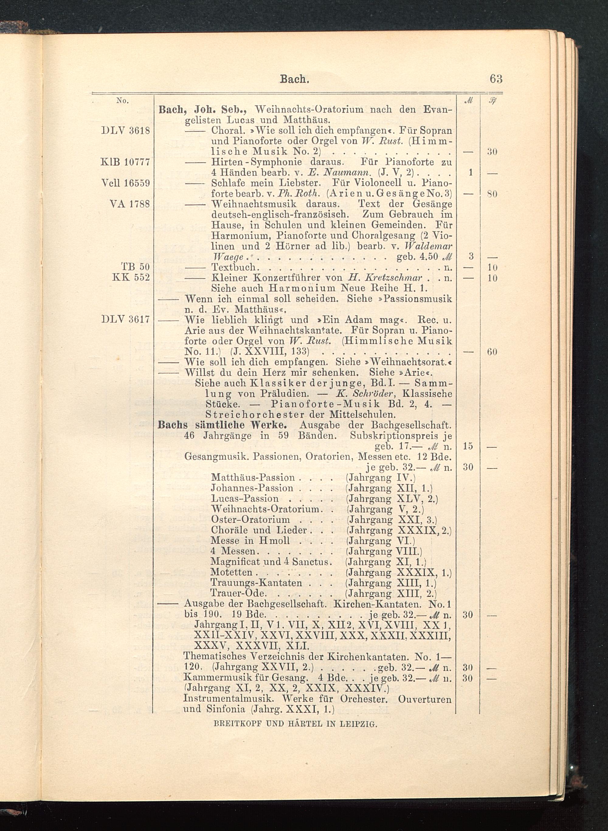 Verzeichnis des Musikalien-Verlages von Breitkopf & Härtel in Leipzig vollständig bis 1902