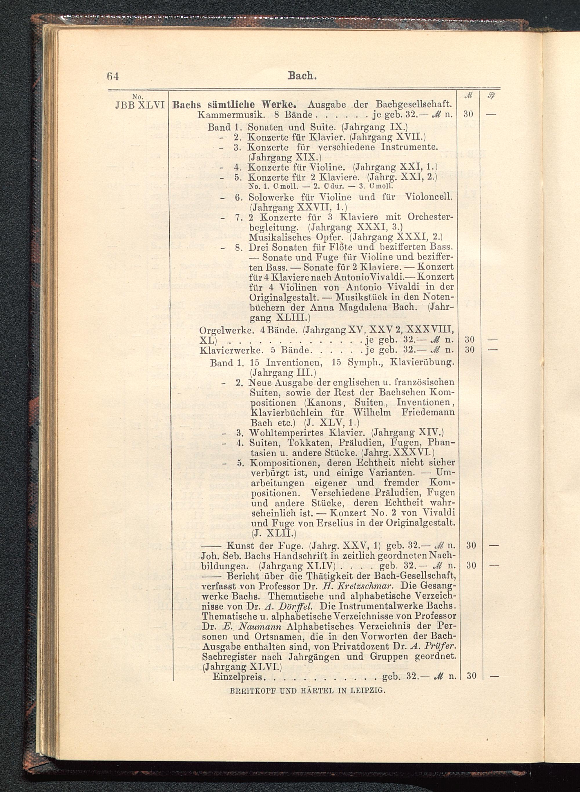 Verzeichnis des Musikalien-Verlages von Breitkopf & Härtel in Leipzig vollständig bis 1902
