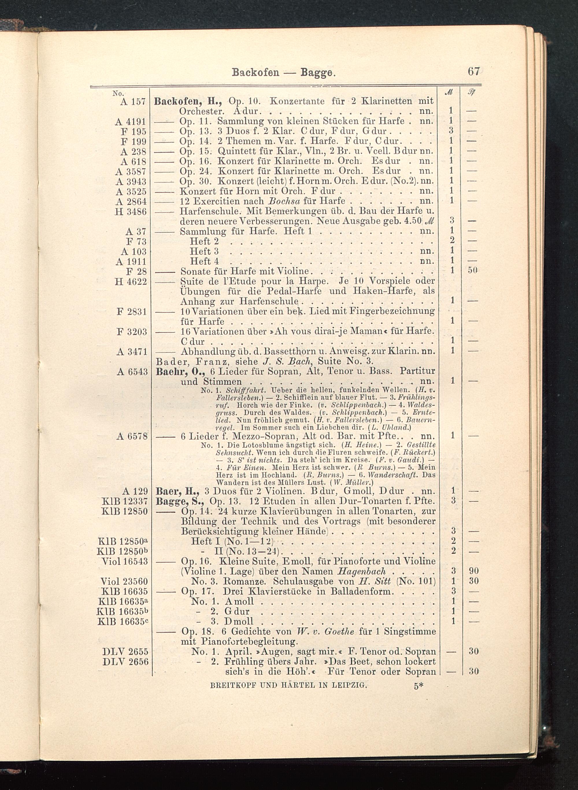 Verzeichnis des Musikalien-Verlages von Breitkopf & Härtel in Leipzig vollständig bis 1902