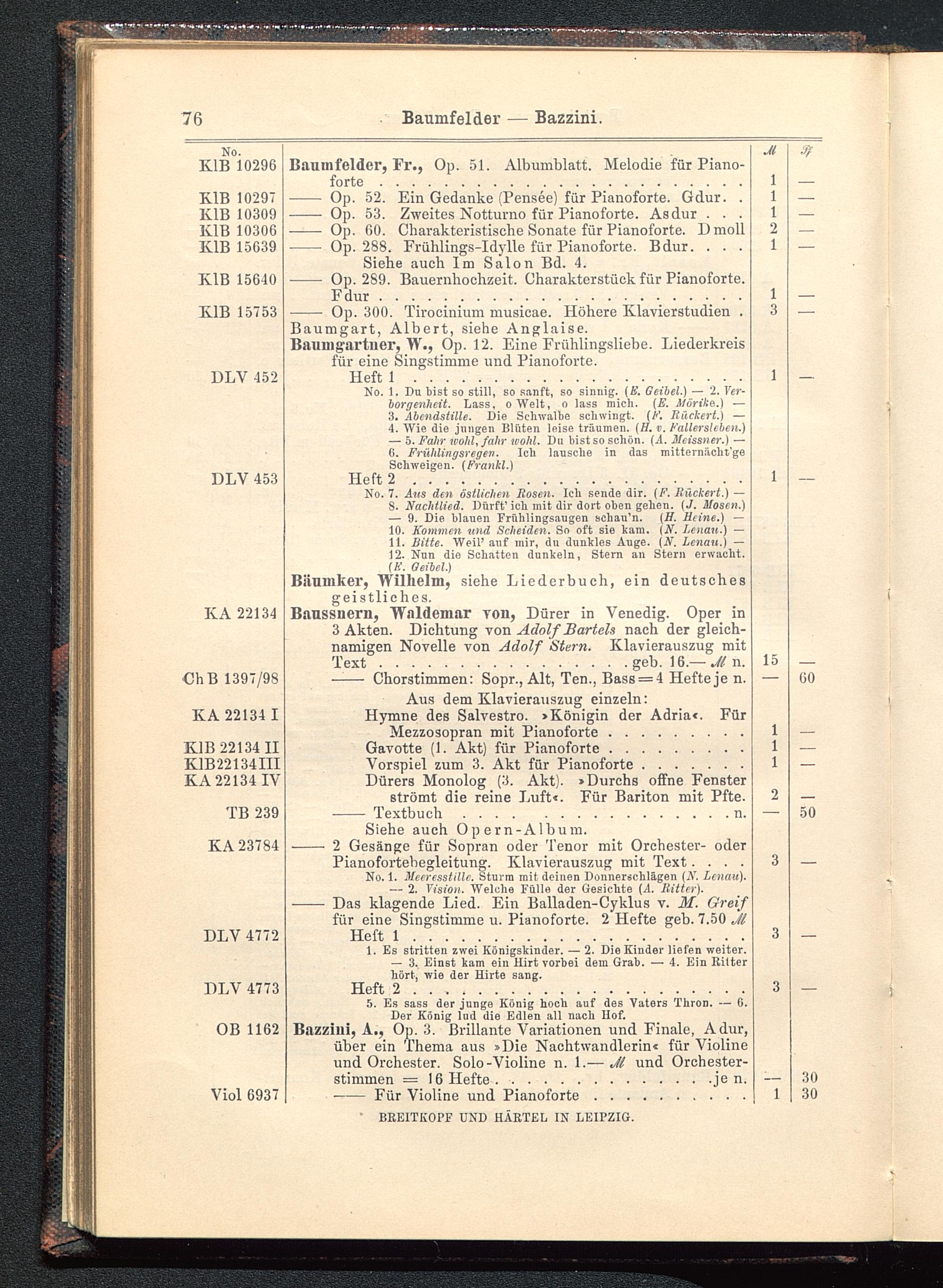 Verzeichnis des Musikalien-Verlages von Breitkopf & Härtel in Leipzig vollständig bis 1902