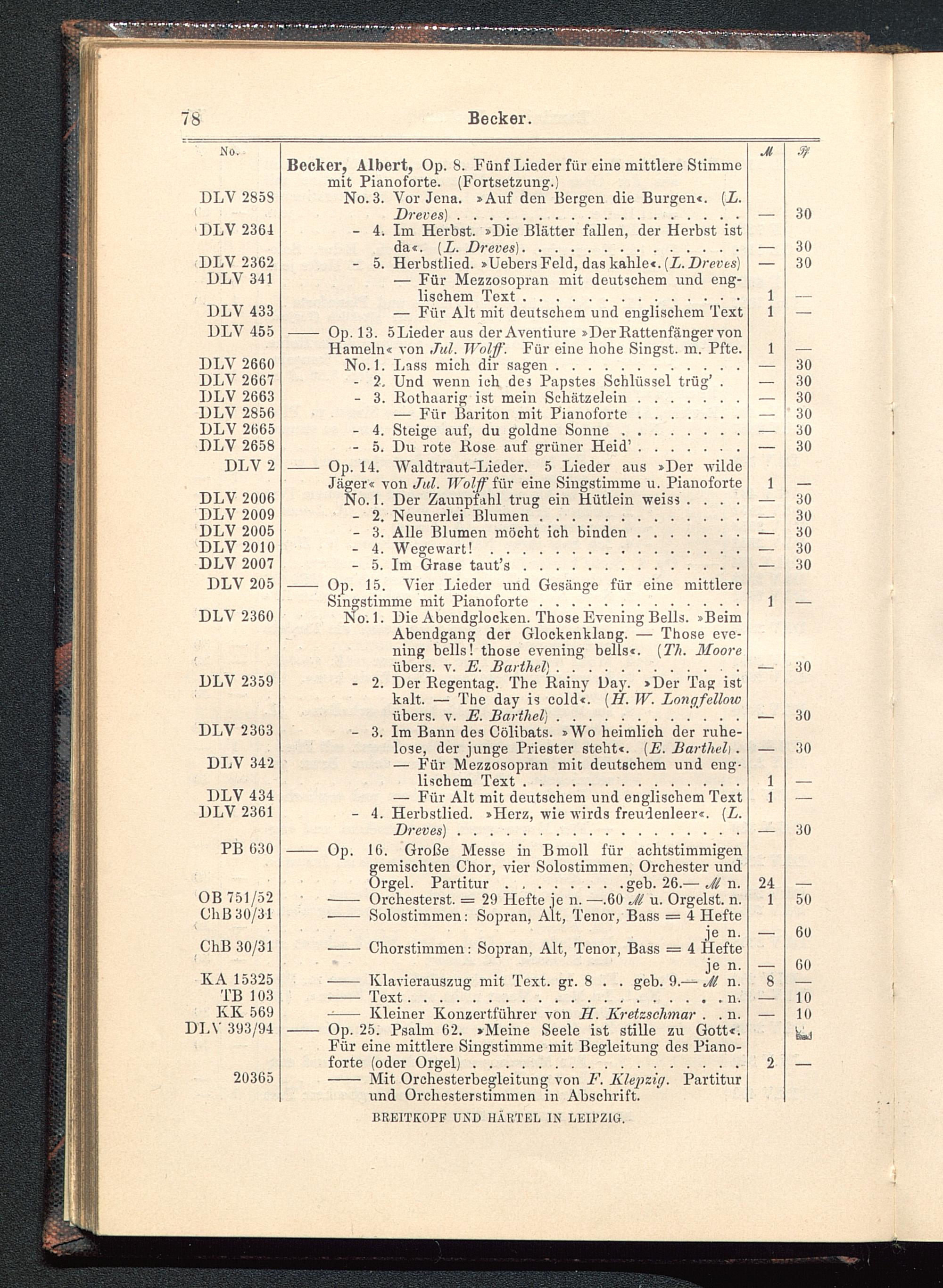Verzeichnis des Musikalien-Verlages von Breitkopf & Härtel in Leipzig vollständig bis 1902