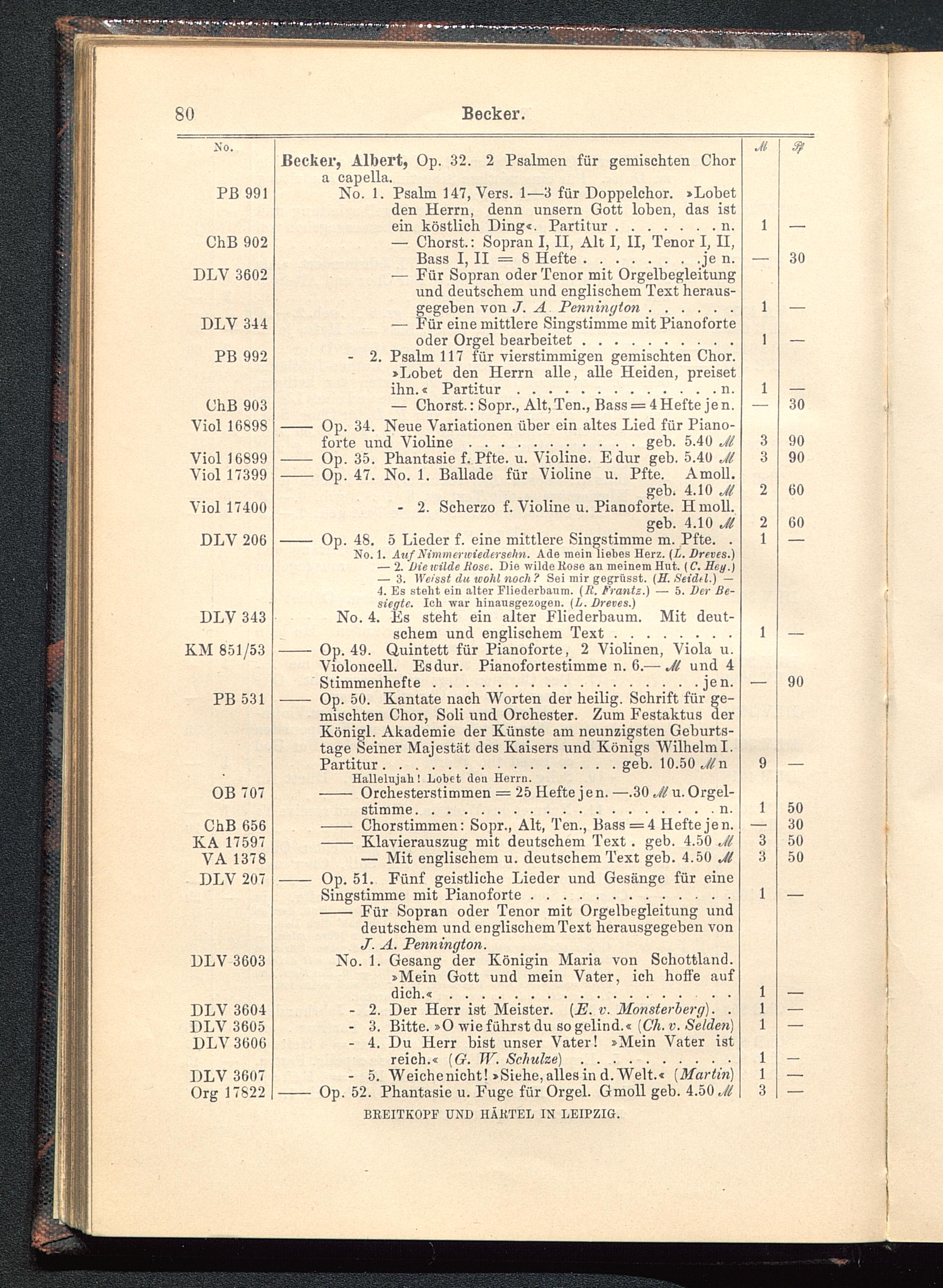 Verzeichnis des Musikalien-Verlages von Breitkopf & Härtel in Leipzig vollständig bis 1902