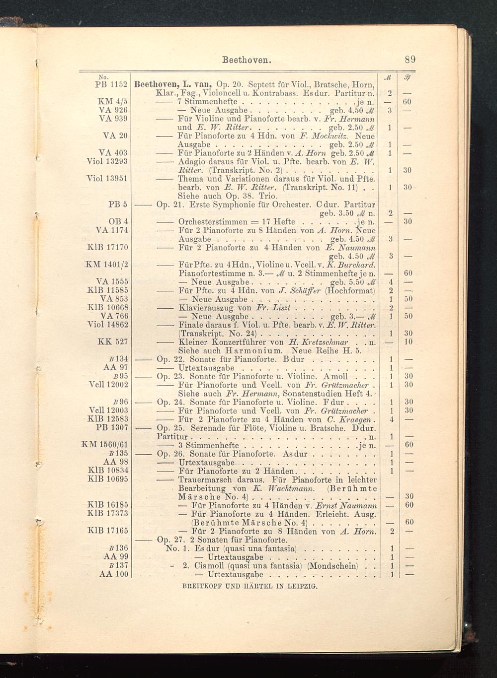 Verzeichnis des Musikalien-Verlages von Breitkopf & Härtel in Leipzig vollständig bis 1902